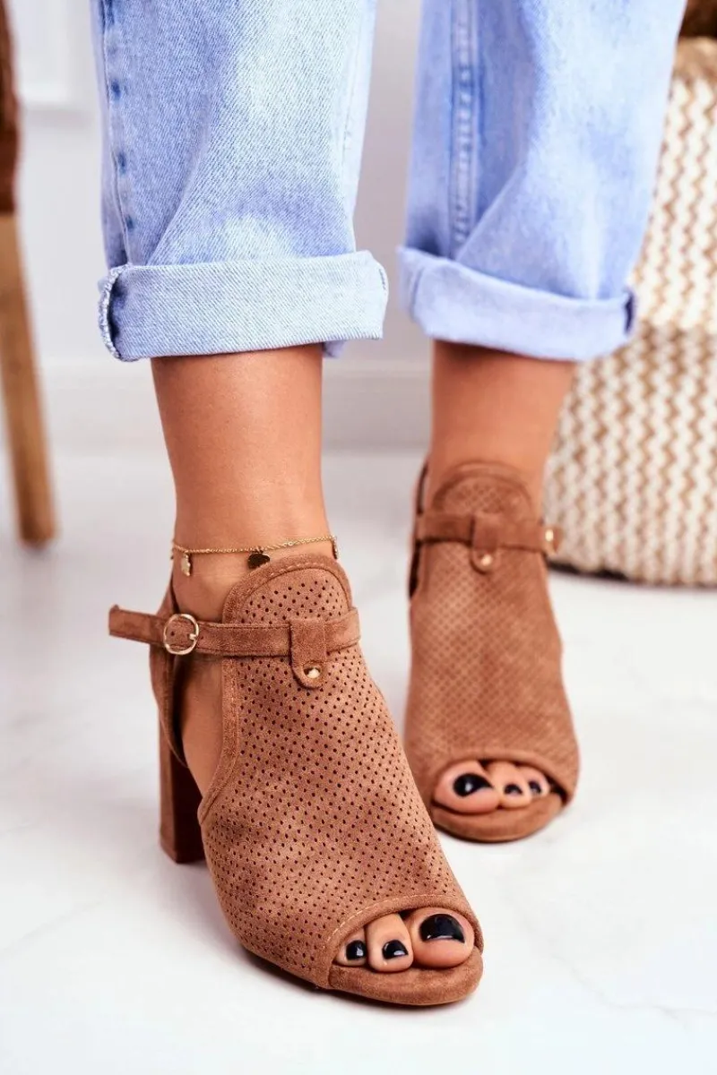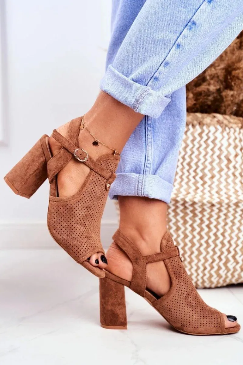 Sale Sandały Damskie Na Słupku Ażurowe Brązowe Kira Damskie Sandały Ażurowe|Sandały Na Obcasie
