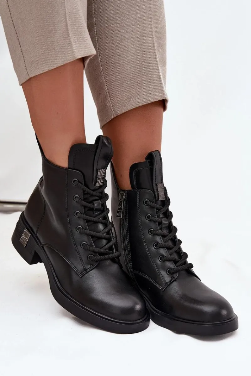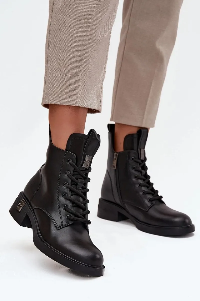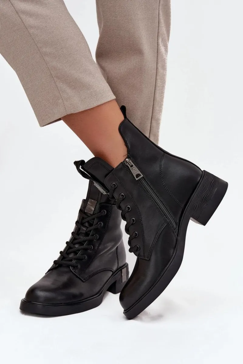 Botki damskie marki Vinceza to wygodna i praktyczna propozycja na chłodniejsze dni. Wykonane z naturalnej skóry, prezentują wysoką jakość i klasyczny styl. Model sznurowany z dodatkowym zapięciem na zamek zapewnia dobre dopasowanie do stopy oraz wygodę zakładania. Osadzone na niskim obcasie gwarantują komfort noszenia na co dzień, a zaokrąglone noski nadają im ponadczasowego charakteru. Wnętrze zostało ocieplone, dzięki czemu buty doskonale sprawdzą się w sezonie jesienno-zimowym. Przy wyborze rozmiaru prosimy sugerować się tabelą rozmiarów.