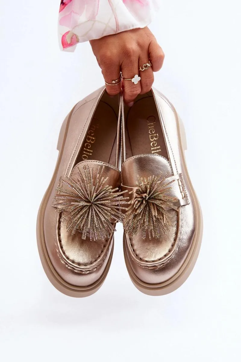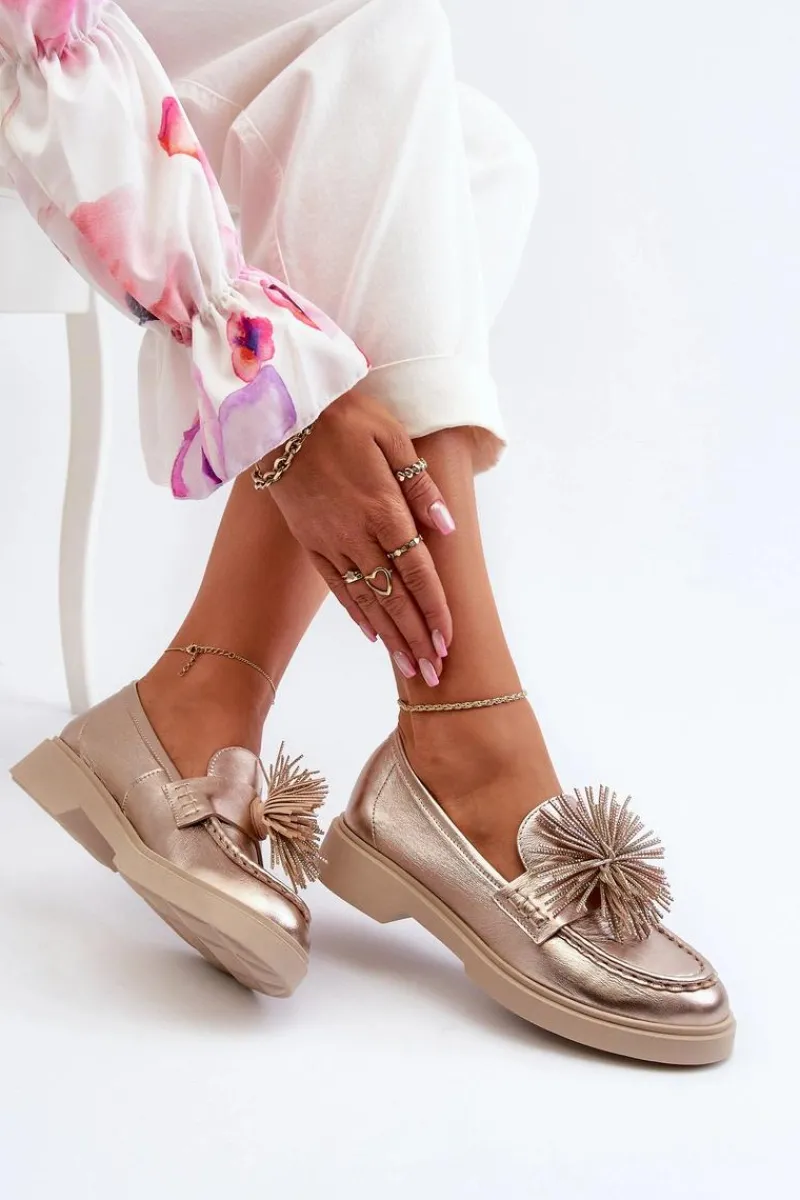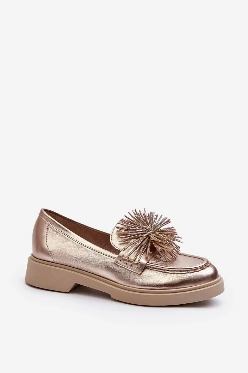 Piękne damskie mokasyny wykonano z wysokiej jakości skóry naturalnej, gwarantując trwałość i komfort noszenia. Ich płaski, masywny obcas zapewnia stabilność i wygodę. Skórzana wkładka dodatkowo podnosi komfort noszenia, zapewniając miękkość i wsparcie dla stóp. Ozdoba na pasku nadaje subtelny, elegancki akcent, który doskonale uzupełnia codzienne stylizacje, sprawiając, że są one nie tylko wygodne, ale także stylowe i uniwersalne. Przy wyborze rozmiaru prosimy sugerować się tabelą rozmiarów.