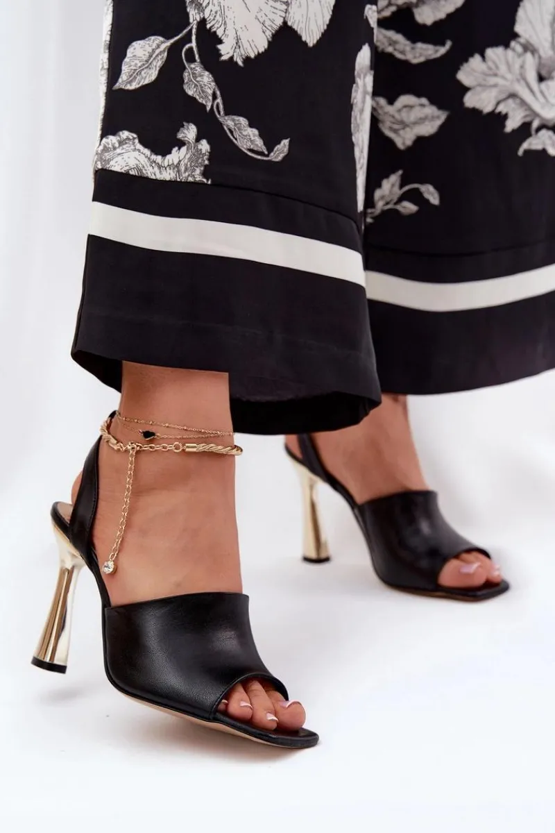 Sandały damskie od marki CheBello wykonane z wysokiej jakości naturalnej skóry. Osadzone na smukłej szpilce, z subtelną bransoletą wokół kostki, dodającą elegancji i szyku. Idealne na wyjątkowe okazje oraz wieczorne wyjścia, łączą w sobie styl, klasę i komfort noszenia. Przy wyborze rozmiaru prosimy sugerować się tabelą rozmiarów.