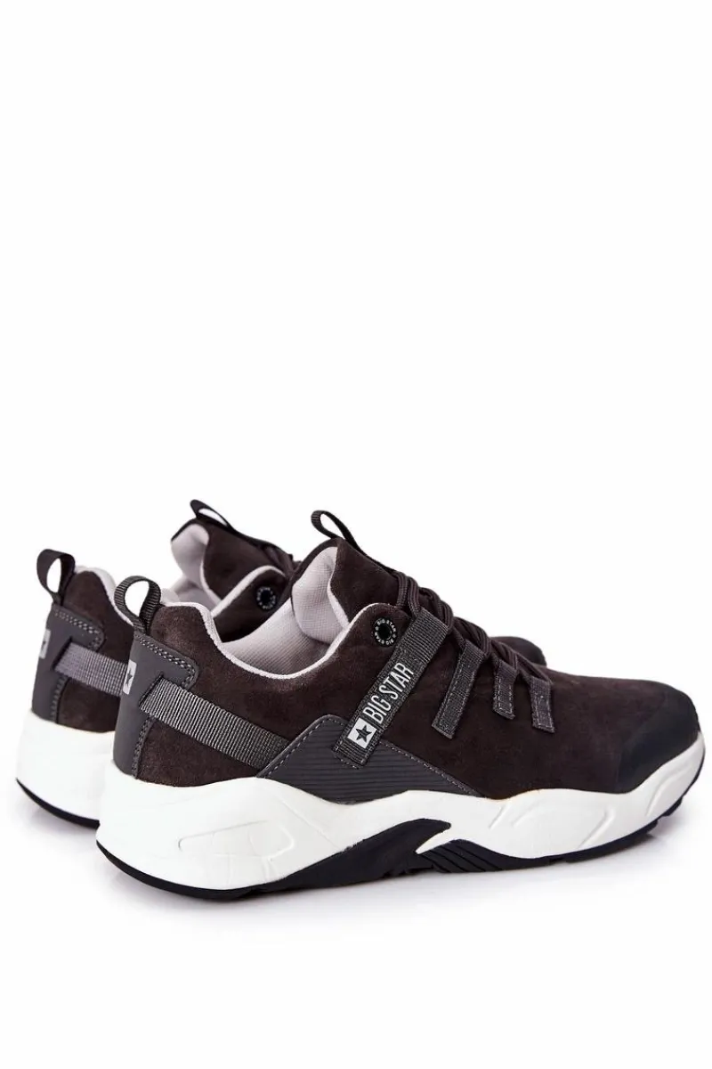 Męskie buty sportowe marki Big Star. Wykonane z połączenia skóry ekologicznej imitującej zamsz oraz tkaniny. Nosek buta oraz zapiętek zostały dodatkowo wzmocnione skórą ekologiczną. Buty posiadają wyjątkową wkładkę MEMORY FOAM SYSTEM. Wkładka zapamiętuje kształt stopy, zapewnia doskonałe dopasowanie, absorbuje wstrząsy, jest odporna na odkształcenia oraz pozwala na odparowywanie wilgoci i regulacje temperatury. Solidne buty marki Big Star – SPRAWDŹ JE! Przy wyborze rozmiaru prosimy sugerować się tabelą rozmiarów.