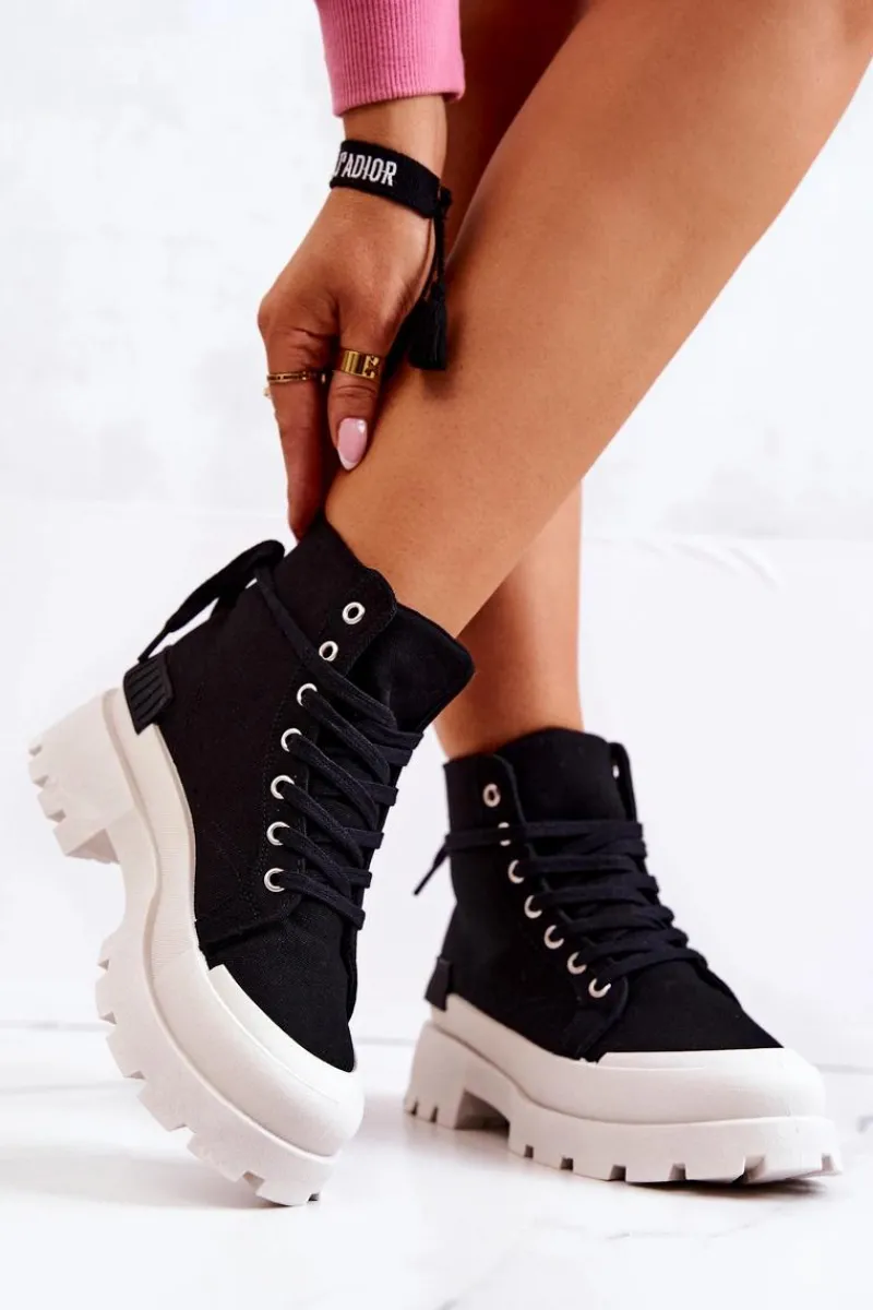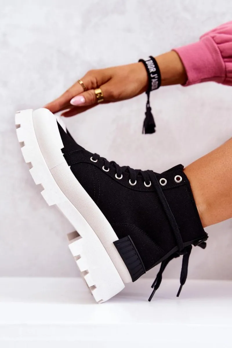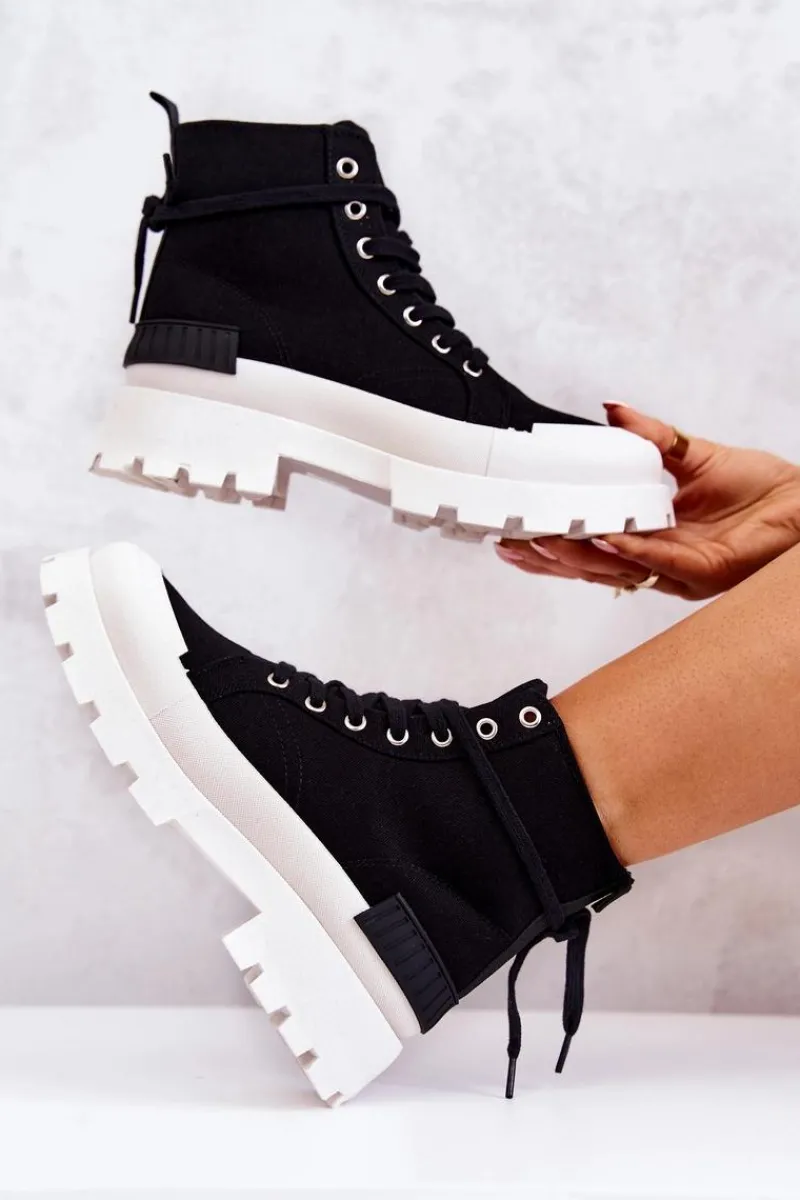 Idealne połączenie trampek i traperów w jednym! Cholewka wykonana z materiału tekstylnego. Wkładka wykonana z tworzywa piankowego oraz materiału. Dodatkowo jest wyciągana. O idealne dopasowanie do nóg zadba solidne sznurowanie. Trapery posiadają wzmocniony gumowy nosek, dzięki czemu są bardziej odporne na uszkodzenia mechaniczne. Koniecznie sprawdź całą naszą kolekcję botków. Przy wyborze rozmiaru prosimy sugerować się tabelą rozmiarów.