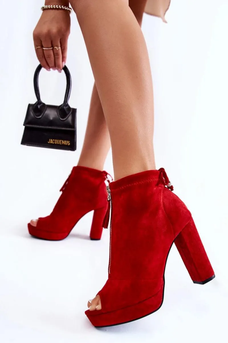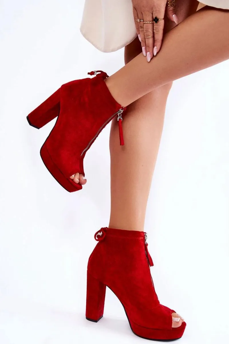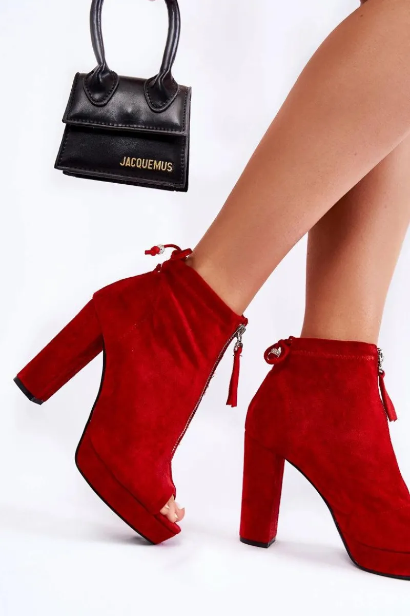 Botki zostały wykonane z zamszowej eko skóry. Posiadają z przodu suwak ułatwiający zakładanie obuwia. Posiadają sztywny zapiętek. Szerokość u góry cholewki jest regulowana, dzięki sznureczkom z ozdobnymi koralikami. Przód obuwia bez noska. Stabilny obcas i niska platforma sprawiają, że te botki są niezwykle komfortowe w noszeniu. Przy wyborze rozmiaru prosimy kierować się tabelą rozmiarów