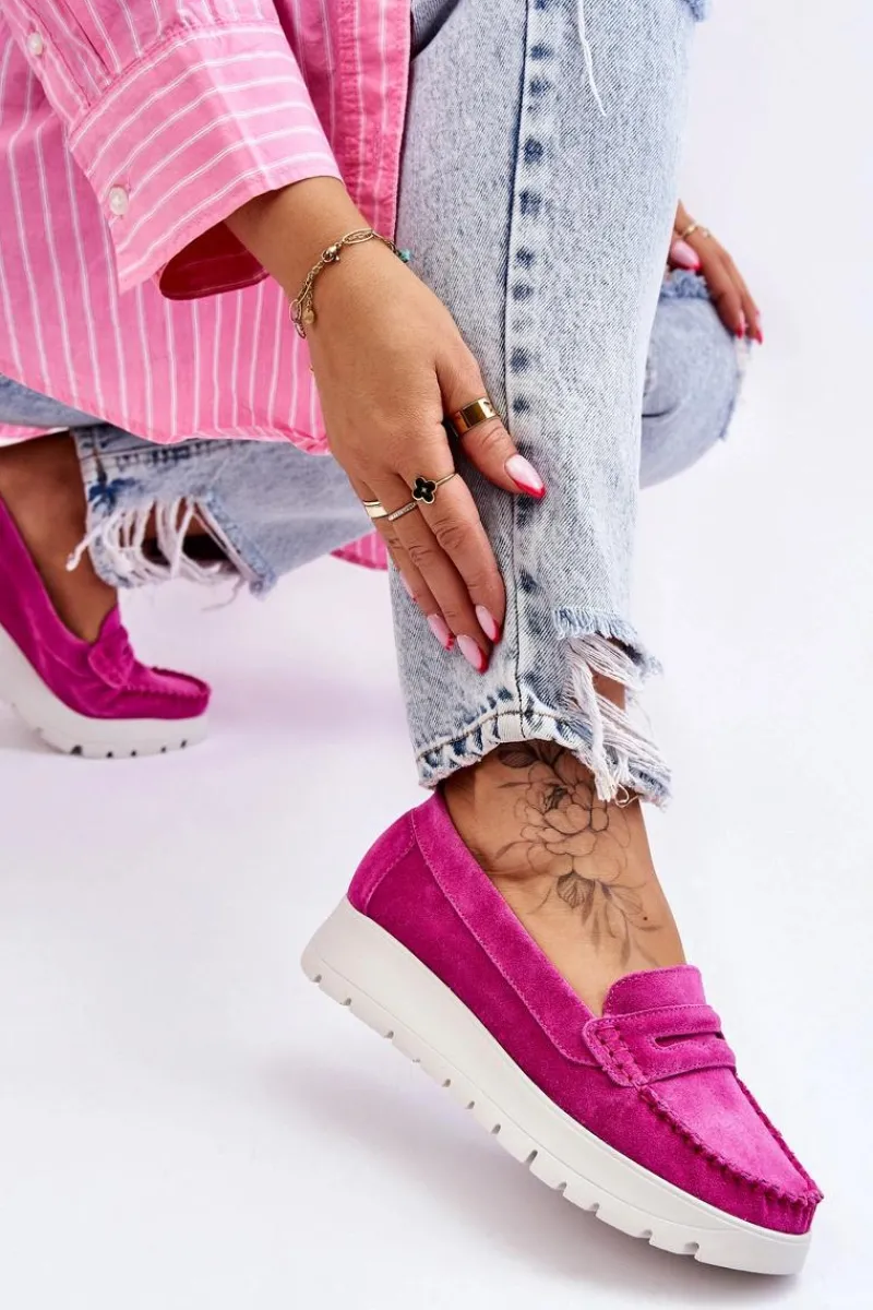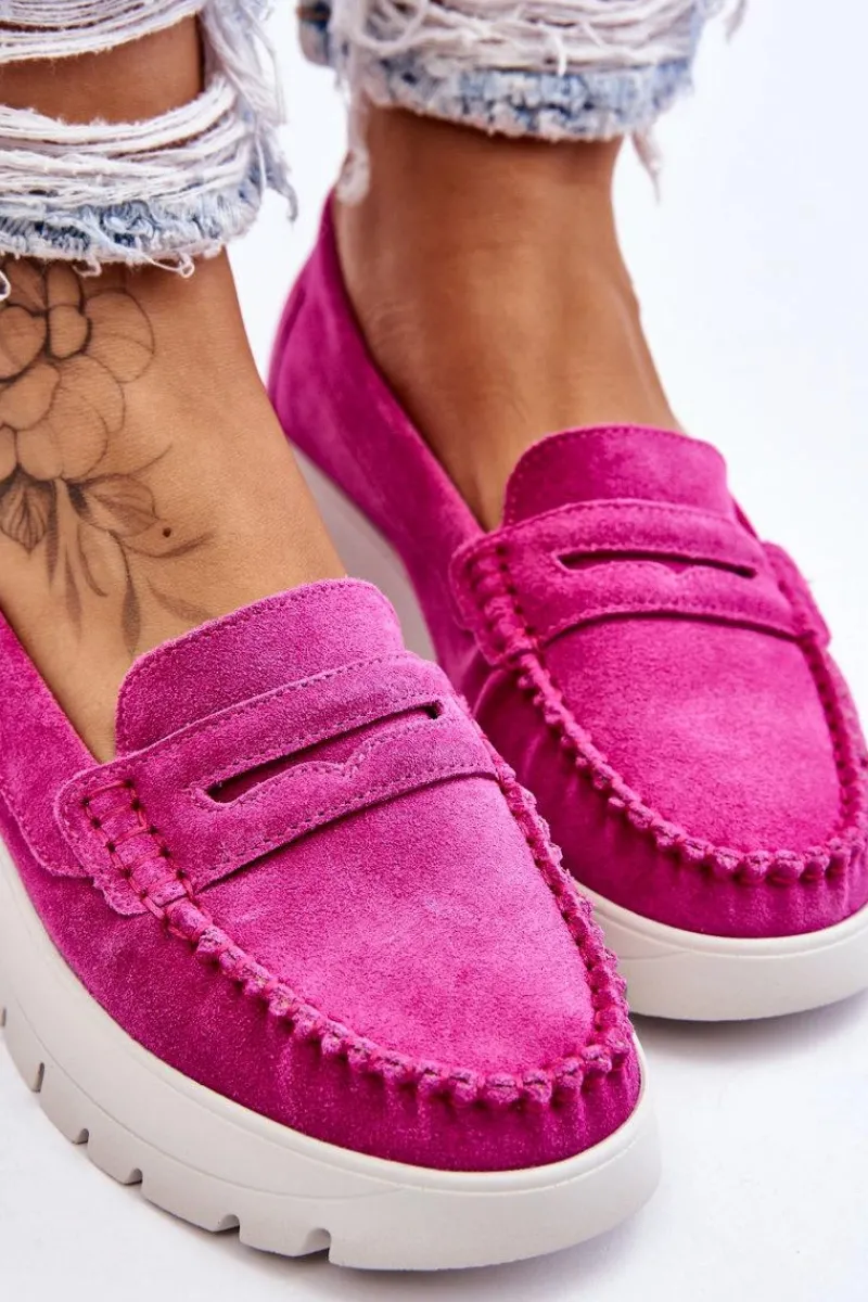 Mokasyny damskie wykonane z naturalnej skóry z ozdobnym paseczkiem z przodu. Zapiętek został usztywniony, co pozwoli na odpowiednią stabilizację stopy. Buty osadzono na platformie. Ten model posiada miękką wkładkę z perforacją. Mokasyny to idealne buty do wielu stylizacji! Koniecznie powinnaś je mieć! Przy wyborze rozmiaru prosimy sugerować się tabelą rozmiarów.