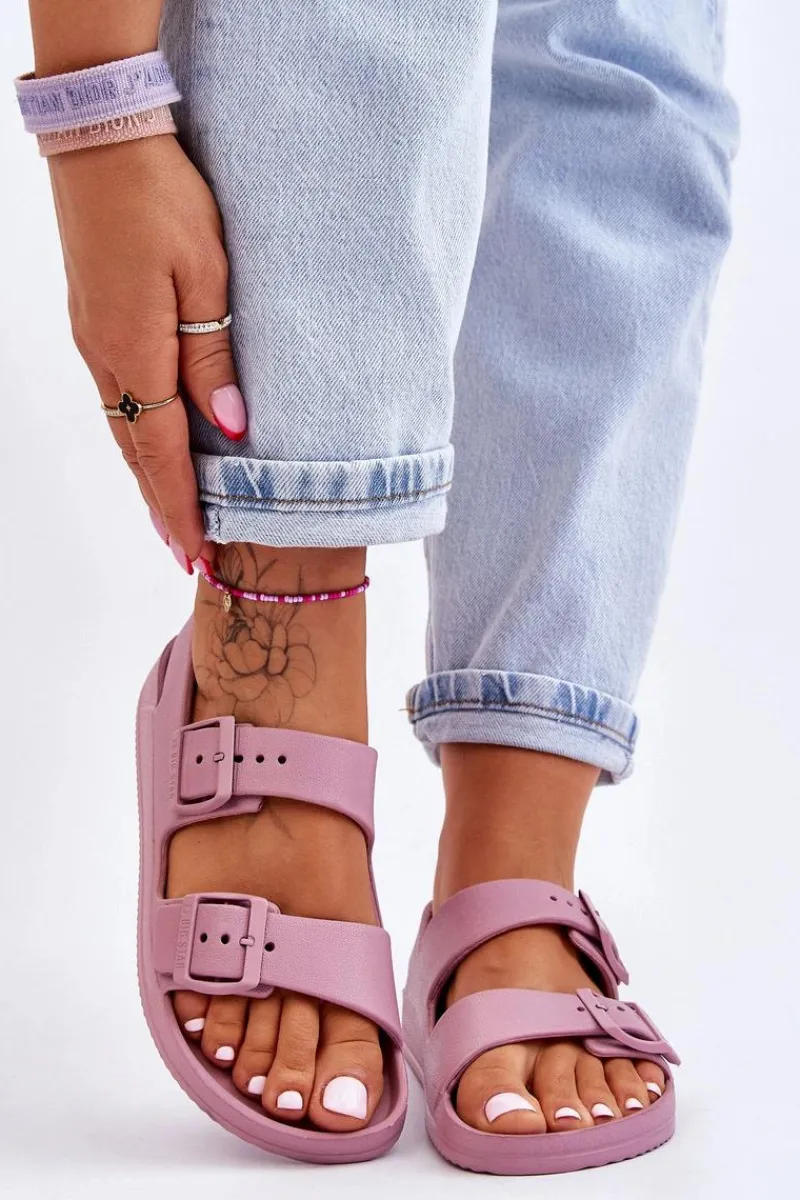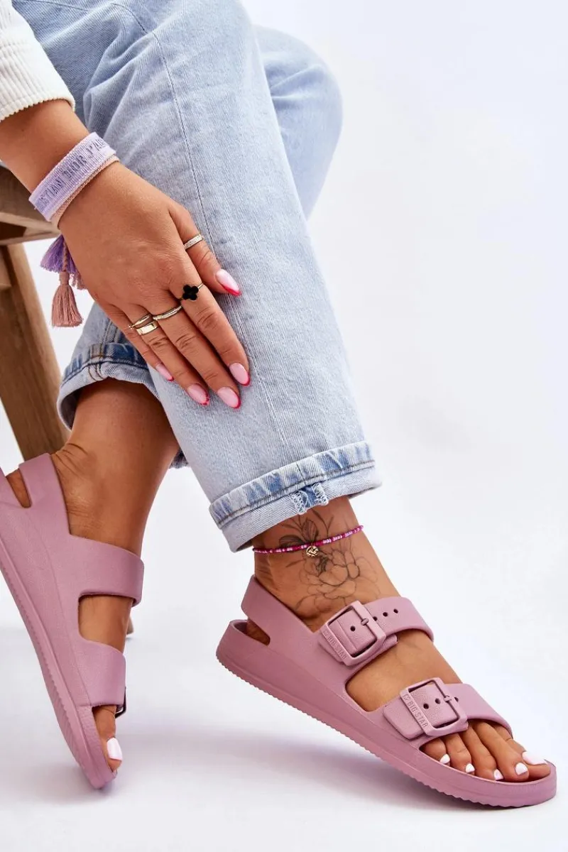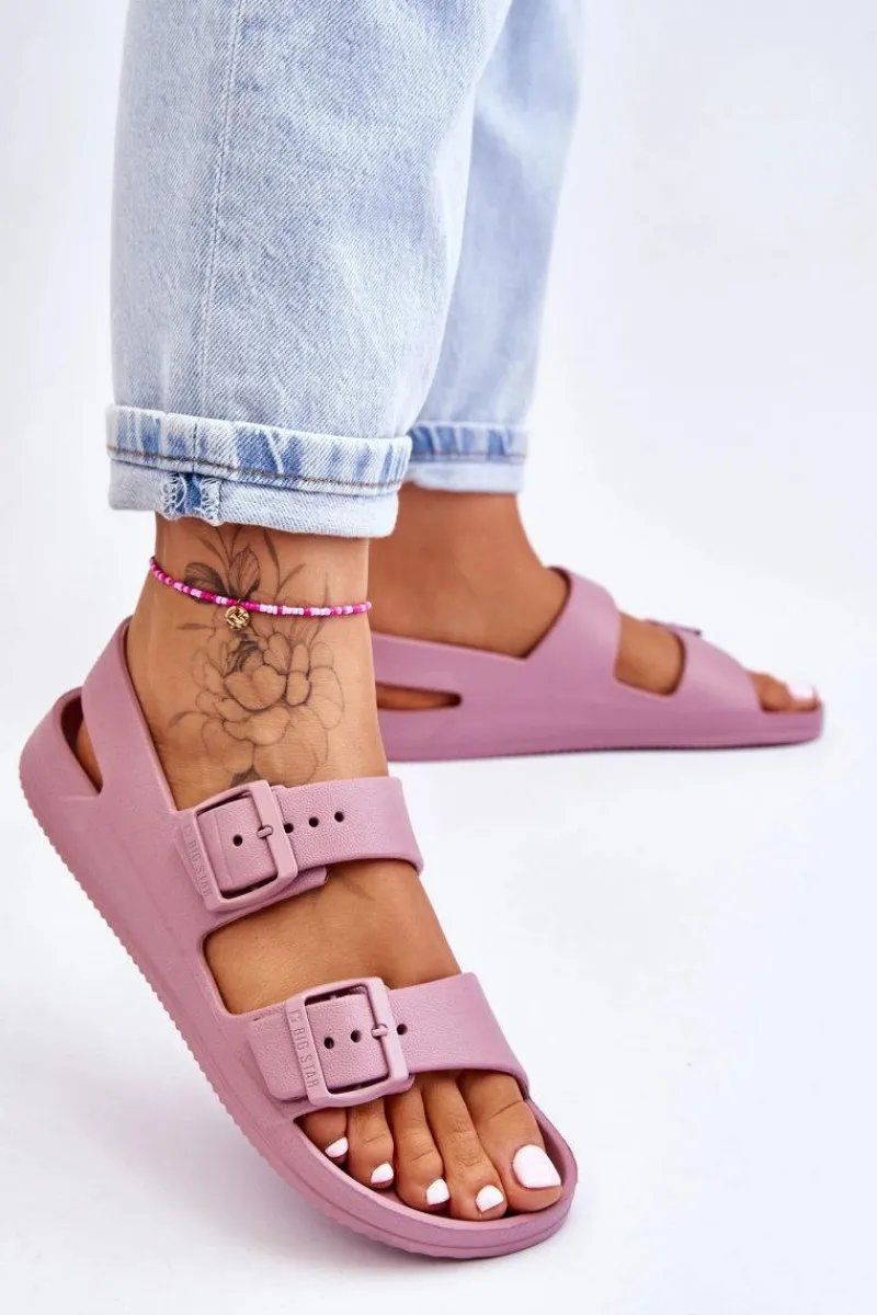 Sandały damskie wykonane z lekkiego, piankowego tworzywa. Model ten posiada regulowane paski zapinane na sprzączki. Świetny model na upalne dni! Osadzone na delikatnej platformie. Sandałki te posiadają z tyłu paseczek podtrzymujący stopę. Sprawdź także pozostałe modele damskich sandałek ! Przy wyborze rozmiaru prosimy sugerować się tabelą rozmiarów.
