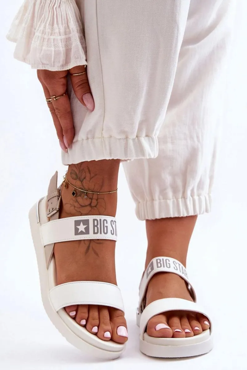 Klasyczne sandały damskie zostały wykonane z połączenia eko skóry oraz tkaniny. Model ten jest zapinany na regulowany pasek ze sprzączką. Sandały osadzono na delikatnej platformie. Wkładka wraz z platformą zostały wykonane z tworzywa sztucznego. Świetny model na cieplejsze dni! Koniecznie sprawdź także pozostałe modele damskich sandałów marki Big Star! Przy wyborze rozmiaru prosimy sugerować się tabelą rozmiarów.