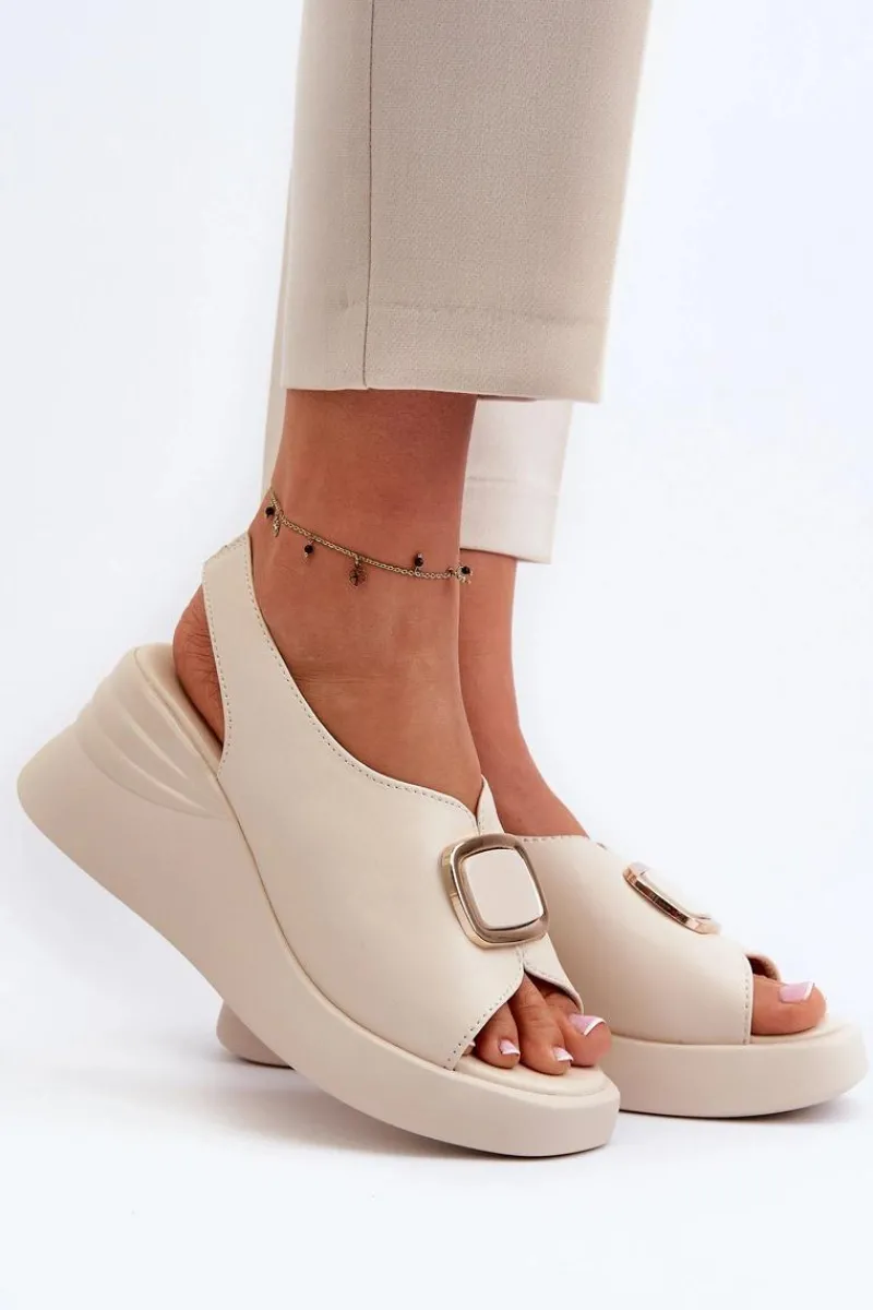 Modne sandały damskie na koturnie to połączenie stylu i wygody. Wykonane ze skóry naturalnej, prezentują elegancki wygląd, który doskonale komponuje się z różnymi letnimi stylizacjami. Z tyłu znajduje się gumka, która zapewnia lepsze dopasowanie do stopy i dodatkowy komfort podczas noszenia. To idealny wybór dla kobiet ceniących zarówno modny design, jak i wygodę. Przy wyborze rozmiaru prosimy sugerować się tabelą rozmiarów.