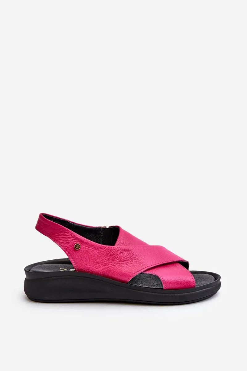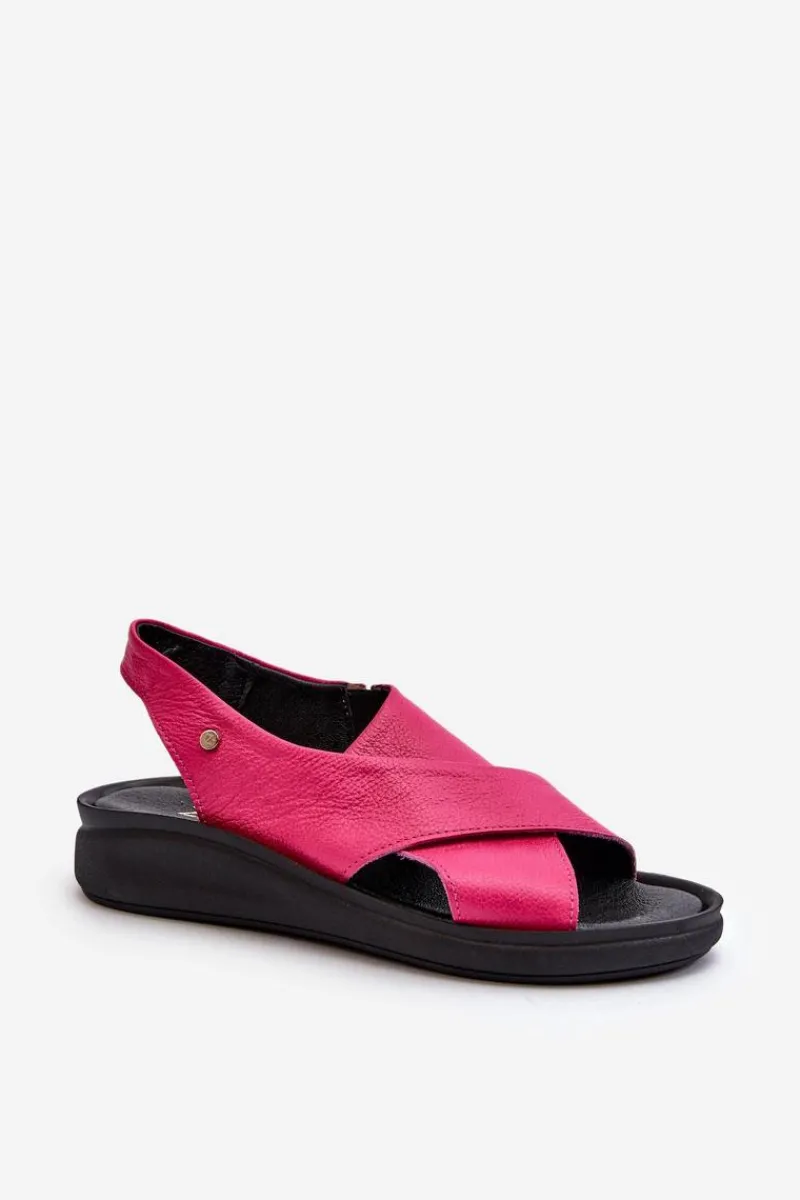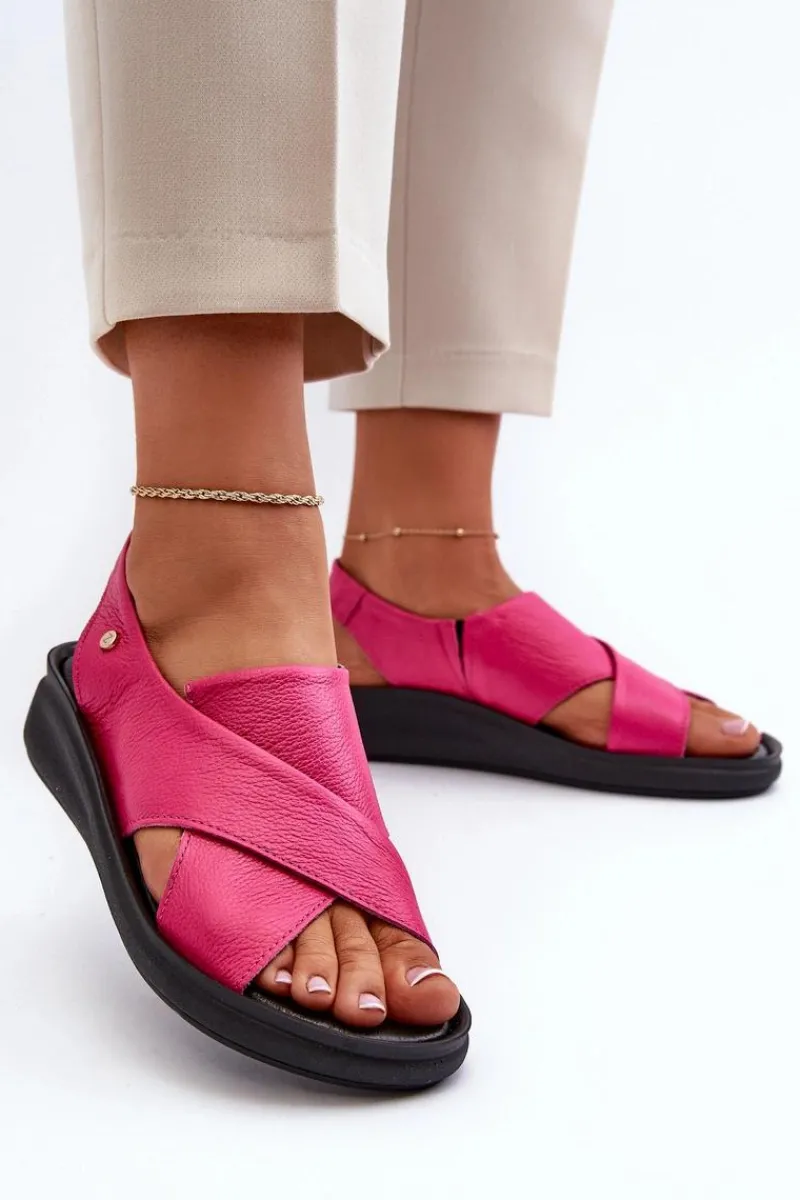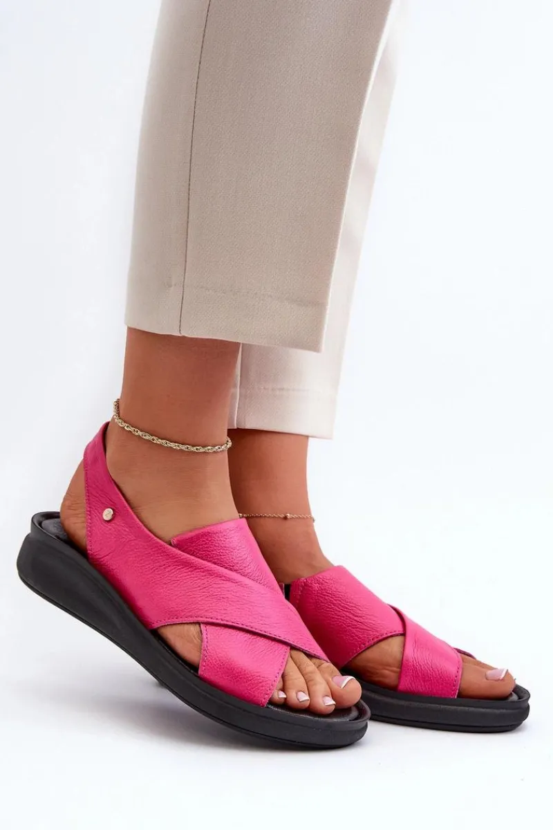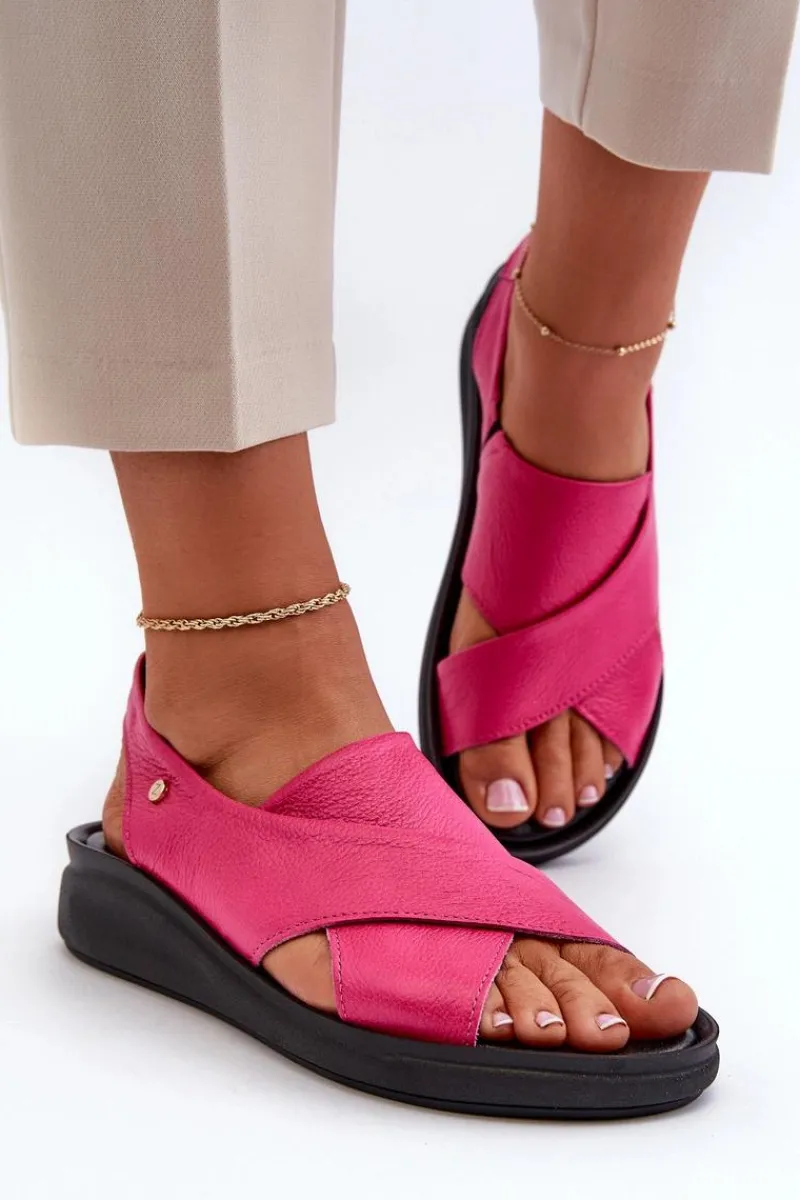 Te sandałki damskie to połączenie wygody i stylu, które z pewnością przypadnie Ci do gustu! Wykonane z naturalnej skóry, zapewniają trwałość i komfort noszenia. Model wsuwany, z dodatkową gumką. Ozdobny emblemat z boku cholewki dodaje im wyjątkowego charakteru, nadając im subtelny, elegancki akcent. Sandały zostały osadzone na platformie oraz lekkim koturnie, co nie tylko dodaje im stylowego wyglądu, ale także zapewnia stabilność i komfort podczas chodzenia. Model ten jest niezwykle praktycznym i modnym dodatkiem do letniej garderoby, idealnym zarówno na codzienne spacery, jak i na bardziej formalne okazje. Przy wyborze rozmiaru prosimy kierować się tabelą rozmiarów.
