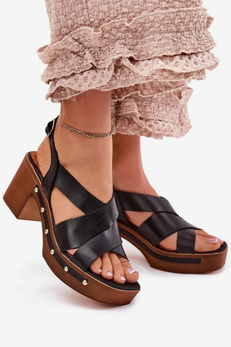 Sandały damskie z naturalnej skóry, osadzone na obcasie w formie słupka, to elegancka propozycja na wyjątkowe okazje. Zapinane na sprzączkę z regulowanym paskiem, umożliwiają łatwe dopasowanie do stopy, zapewniając komfort przez cały dzień. Idealne na wieczorne wyjścia, wesela czy inne formalne uroczystości. Przy wyborze rozmiaru prosimy sugerować się tabelą rozmiarów.