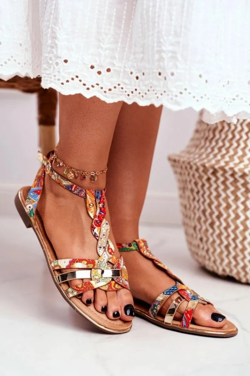 Eleganckie sandały ozdobione modnym wzorem. Buty zostały wykonane z wysokiej jakości skóry ekologicznej. Przy wyborze rozmiaru, prosimy sugerować się tabelą rozmiarów.