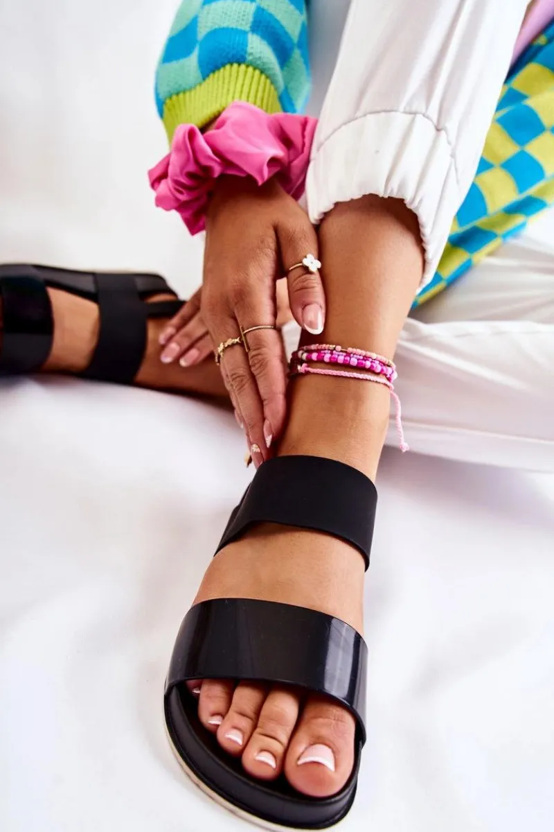 Wygodne i modne sandały damskie zostały wykonane z gumowego tworzywa. Zapinane na regulowany pasek ze sprzączką. Sandałki posiadają odkryty, zaokrąglony nosek oraz odkrytą piętę. Osadzone na niskiej platformie, co sprawia, że buty są niezwykle stabilne. Te sandałki to idealny fason na upalne dni. Świetnie będą prezentować się w wielu stylizacjach! Przy wyborze rozmiaru prosimy sugerować się tabelą rozmiarów.