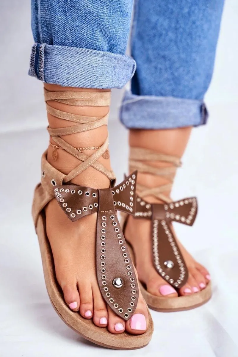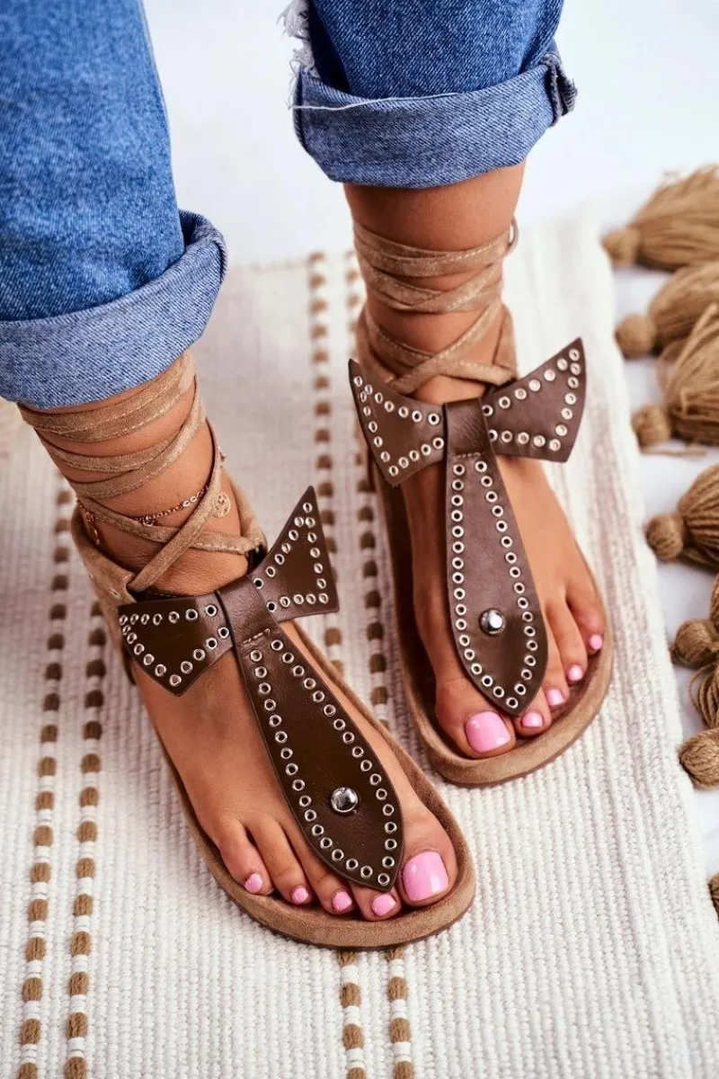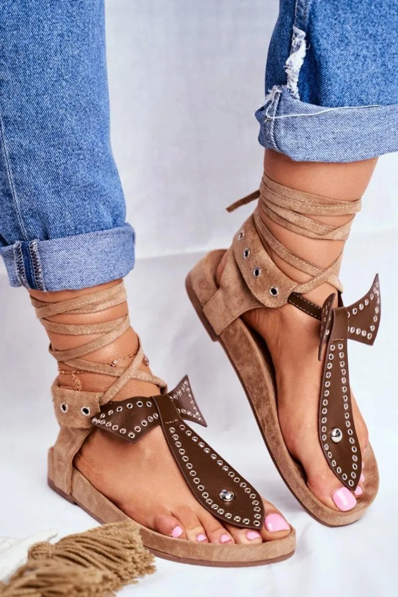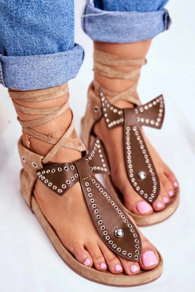 Sandały Płaskie>Boto Lu Boo Damskie Brązowe Wiązane Sandały Japonki Mara