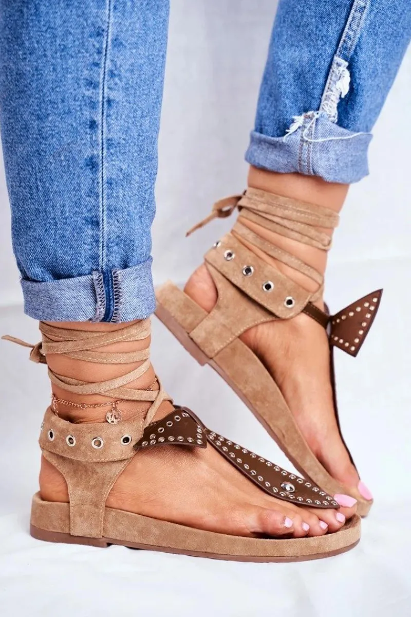 Firma Lu Boo nigdy nie przestanie zaskakiwać i tym razem oferuje nam te wspaniałe damskie sandały wzorowane na najpopularniejszym modelu Isabel Marant. Delikatny ekozamszowy materiał oraz wiązanie wokół kostki to gwarancja komfortu nawet podczas najdłuższych letnich wypadów. Z nimi stworzysz niepowtarzalne stylizacje i na pewno zostaniesz zauważona! Dostępne w kilku cudownych kolorach. Ten model warto mieć w swojej kolekcji!