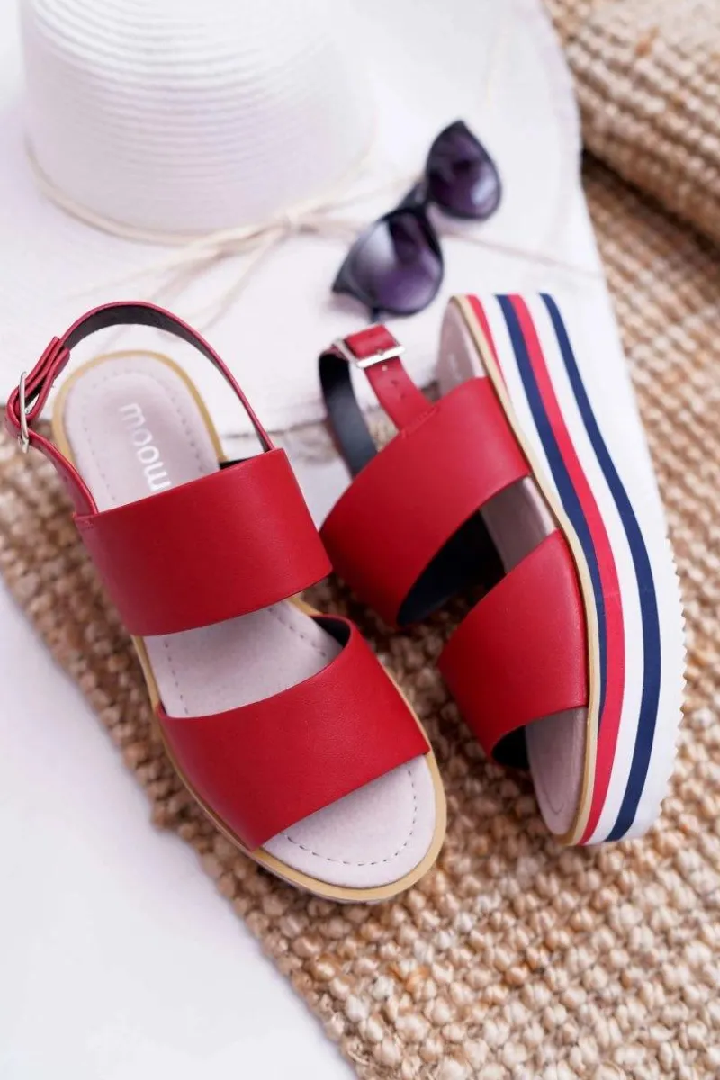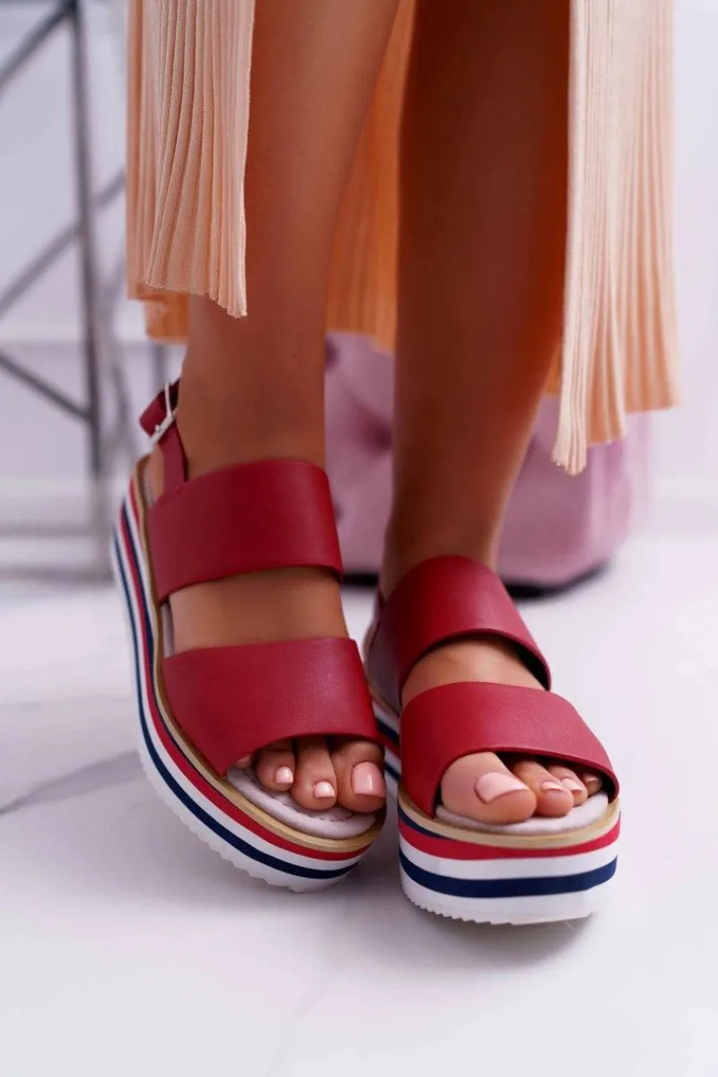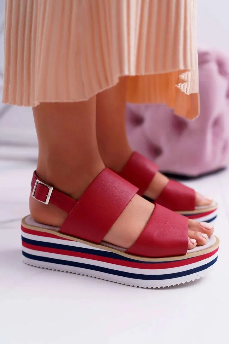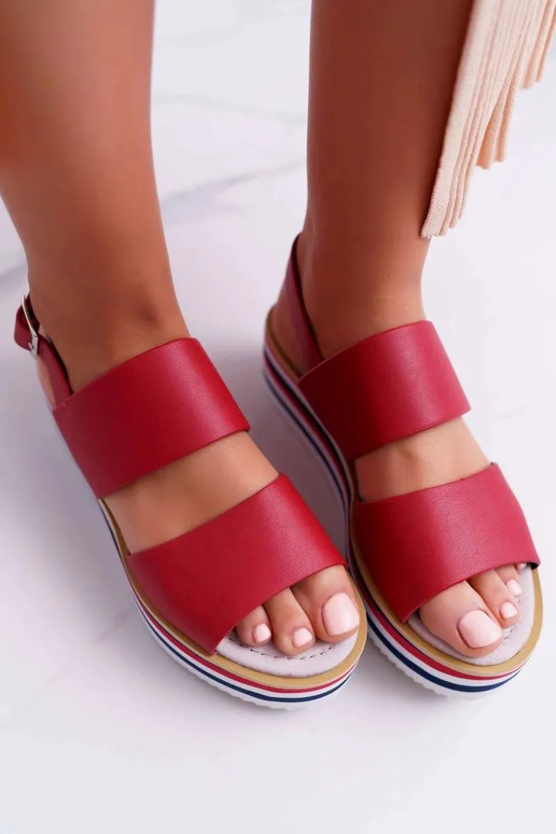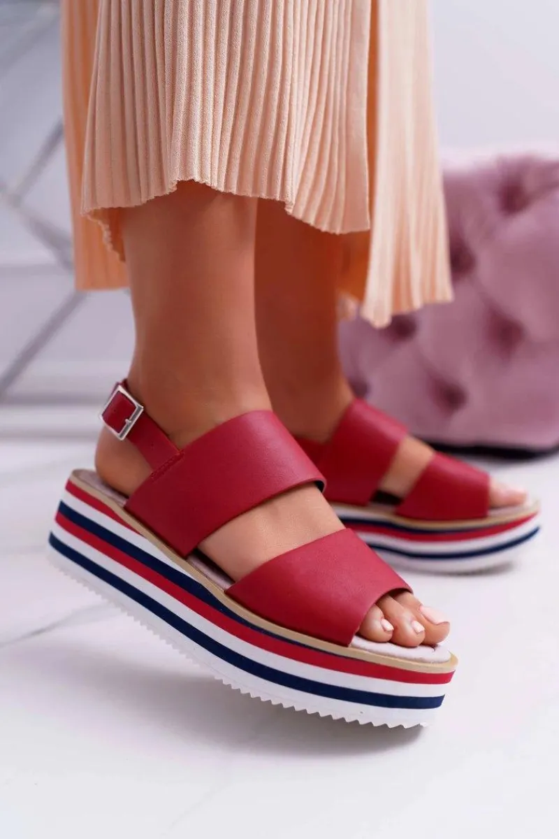 Sandały Płaskie>Boto Sandały Damskie Na Platformie Czerwone Aurera
