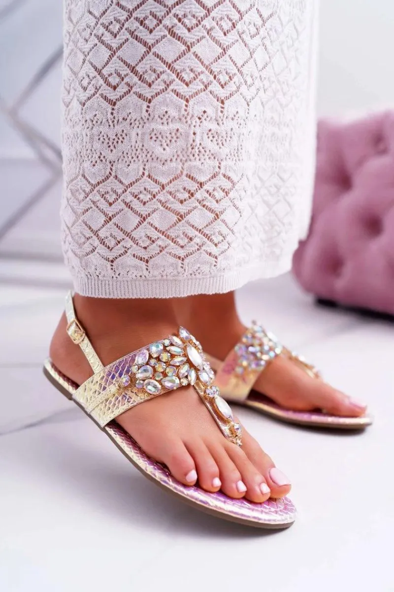 Sandały marki Lu Boo ozdobione kryształami. Sandały wykonane są z lakierowanej skóry ekologicznej. Przy wyborze rozmiaru prosimy sugerować się tabelą rozmiarów.