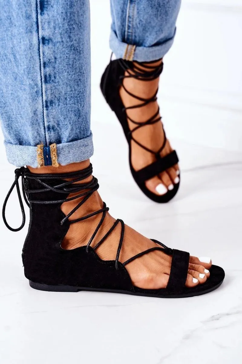 Wyjątkowe sandały z wiązaniem wokół kostki marki Lu Boo. Sandały zostały wykonane z eko zamszu, wszyty suwak ułatwi zakładanie. Przy wyborze rozmiaru prosimy sugerować się tabelą rozmiarów.