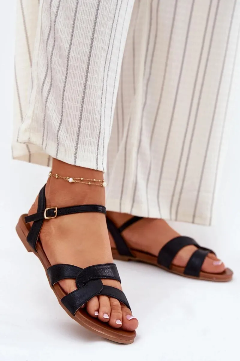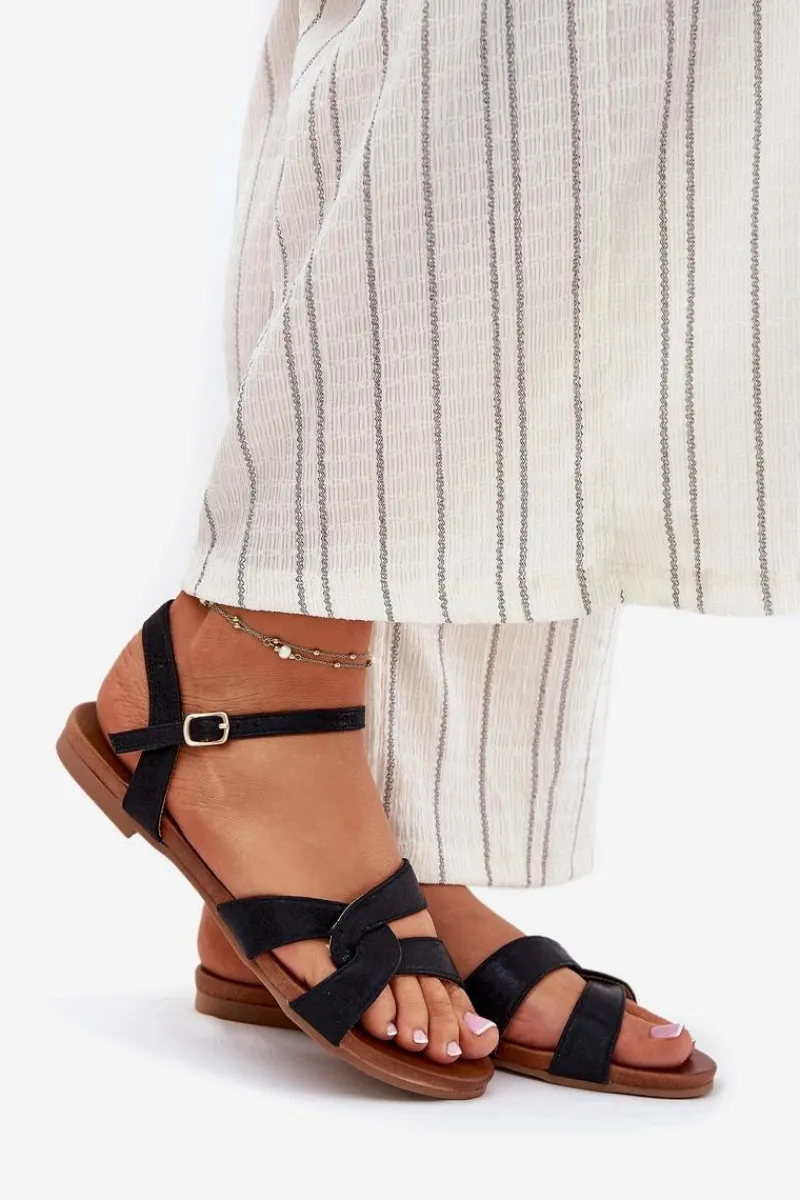 Damskie sandały wykonane z wysokiej jakości eko skóry to klasyczna propozycja na ciepłe dni. Model zapinany na sprzączkę z regulowanym paskiem umożliwia idealne dopasowanie do stopy, zapewniając wygodę przez cały dzień. Płaska podeszwa gwarantuje komfort i stabilność, a klasyczny fason sprawia, że te sandały doskonale komponują się z różnorodnymi letnimi stylizacjami. Przy wyborze rozmiaru prosimy kierować się tabelą rozmiarów.