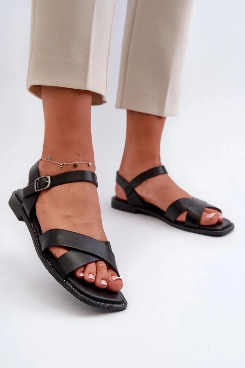 Sandały damskie wykonane z wysokiej jakości eko skóry, idealne na ciepłe dni. Z przodu znajdują się dwa przeplatające się paski, które dodają im oryginalnego i modnego wyglądu. Zapięcie na regulowany pasek ze sprzączką zapewnia idealne dopasowanie do stopy. Doskonałe na letnie spacery, spotkania ze znajomymi czy codzienne wyjścia. Przy wyborze rozmiaru prosimy kierować się tabelą rozmiarów.