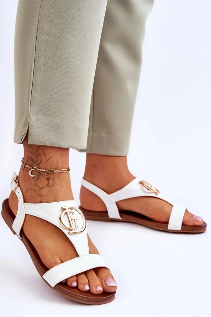Piękne, damskie sandałki wykonane z wysokiej jakości eko skóry. Model ten posiada zdobienie na paseczku w postaci literek. Sandałki są zapinane na regulowany pasek ze sprzączką. Wygodna wkładka Comfort świetnie sprawdzi się podczas długiego użytkowania obuwia. Sandałki osadzono na płaskim obcasie z antypoślizgową podeszwą. Przy wyborze rozmiaru prosimy kierować się tabelą rozmiarów.