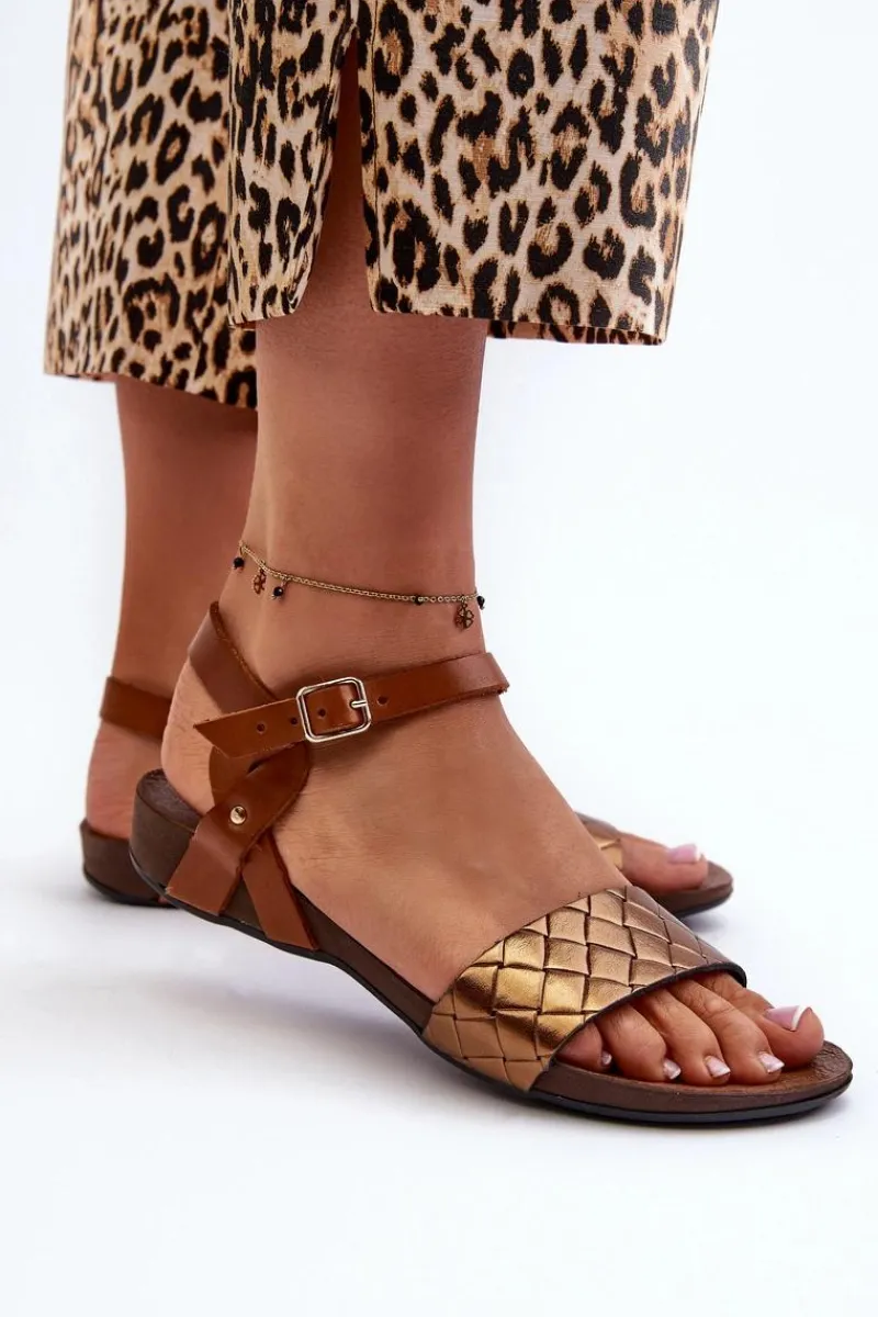 Płaskie sandały damskie wykonane z wysokiej jakości skóry naturalnej, co zapewnia trwałość i komfort noszenia. Klasyczny design sprawia, że są one doskonałym wyborem na co dzień. Zapinane na regulowany pasek ze sprzączką, gwarantują precyzyjne dopasowanie do stopy, co przekłada się na jeszcze większy komfort. Te sandały są nie tylko stylowe, ale także wygodne, doskonale sprawdzające się podczas letnich aktywności i spacerów. Przy wyborze rozmiaru prosimy kierować się tabelą rozmiarów.