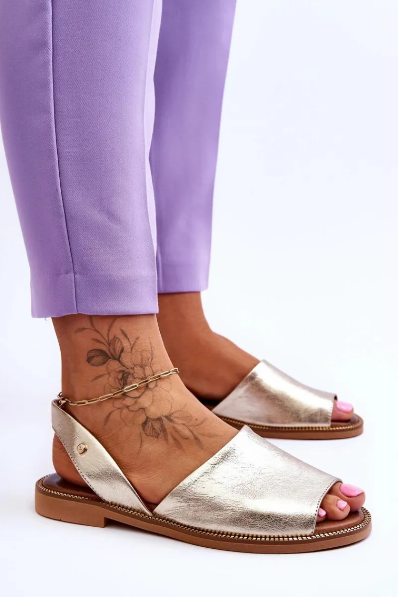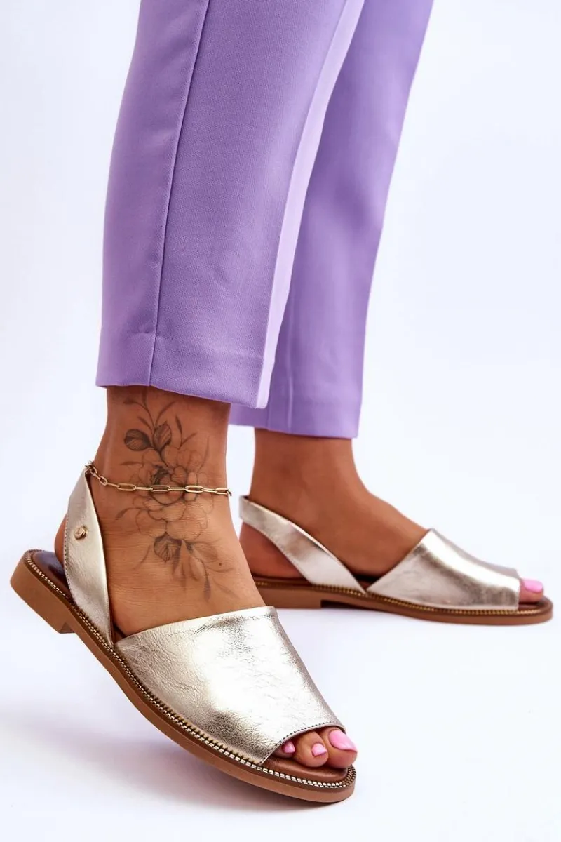 Wsuwane sandałki damskie zostały wykonane z wysokiej jakości naturalnej skóry. Osadzone na płaskim obcasie ze zdobieniami przy podeszwie. Sandałki posiadają odkrytą piętę i palce. Miękka, skórzana wkładka zapewni wygodne użytkowanie. Sandałki są wsuwane, a ich tylna część cholewki jest delikatnie usztywniona. Przy wyborze rozmiaru prosimy kierować się tabelą rozmiarów.