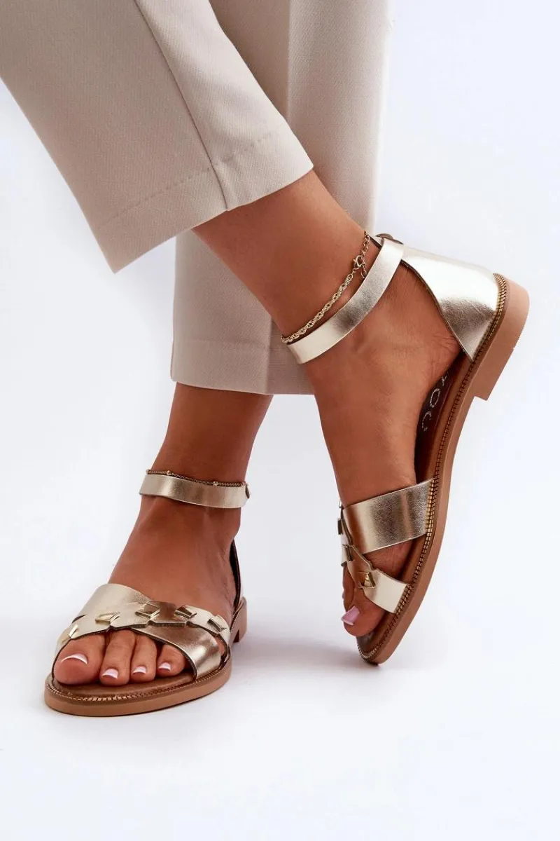 Sandały damskie z płaską podeszwą, wykonane z naturalnej skóry, to wyjątkowo komfortowe i stylowe obuwie na letnie dni. Z przodu posiadają dwa przeplatające się paski. Zapinane na regulowany pasek ze sprzączką, zapewniają idealne dopasowanie do stopy. Te sandały są nie tylko praktyczne, ale także nadają elegancji każdej letniej stylizacji. Przy wyborze rozmiaru prosimy kierować się tabelą rozmiarów.