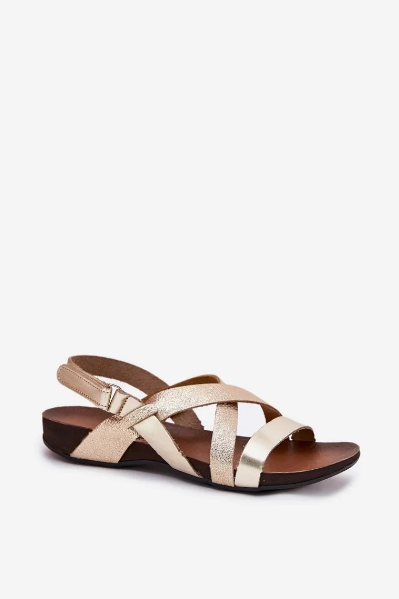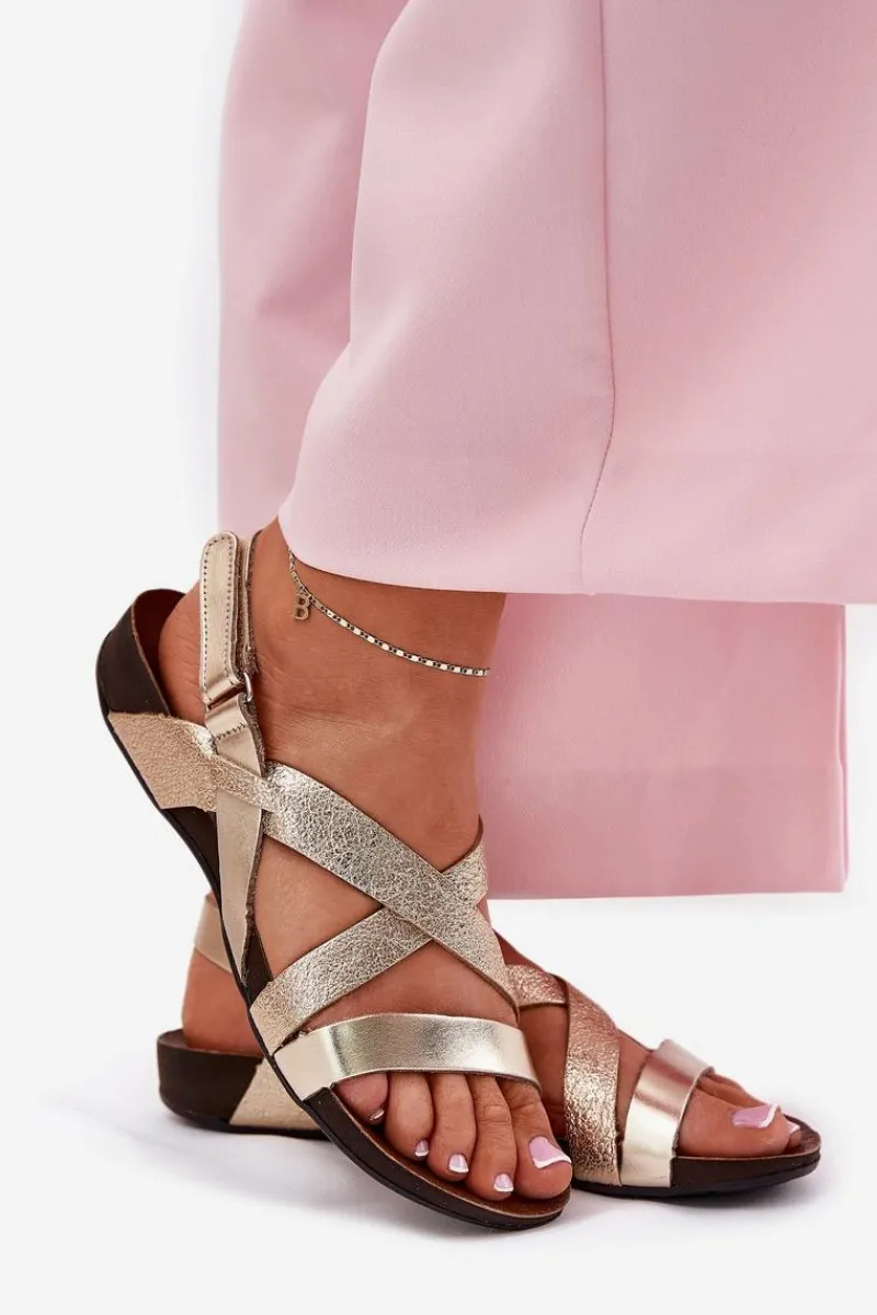 Damskie sandały z naturalnej skóry to doskonały wybór na ciepłe dni. Osadzone na płaskim obcasie, zapewniają wygodę i komfort przez cały dzień. Model zapinany na rzep, z trzema paskami z przodu, łączy klasyczny styl z elegancją. Te sandały będą idealnym dopełnieniem letnich stylizacji, doskonale komponując się zarówno z sukienkami, jak i spodniami.Przy wyborze rozmiaru prosimy kierować się tabelą rozmiarów.
