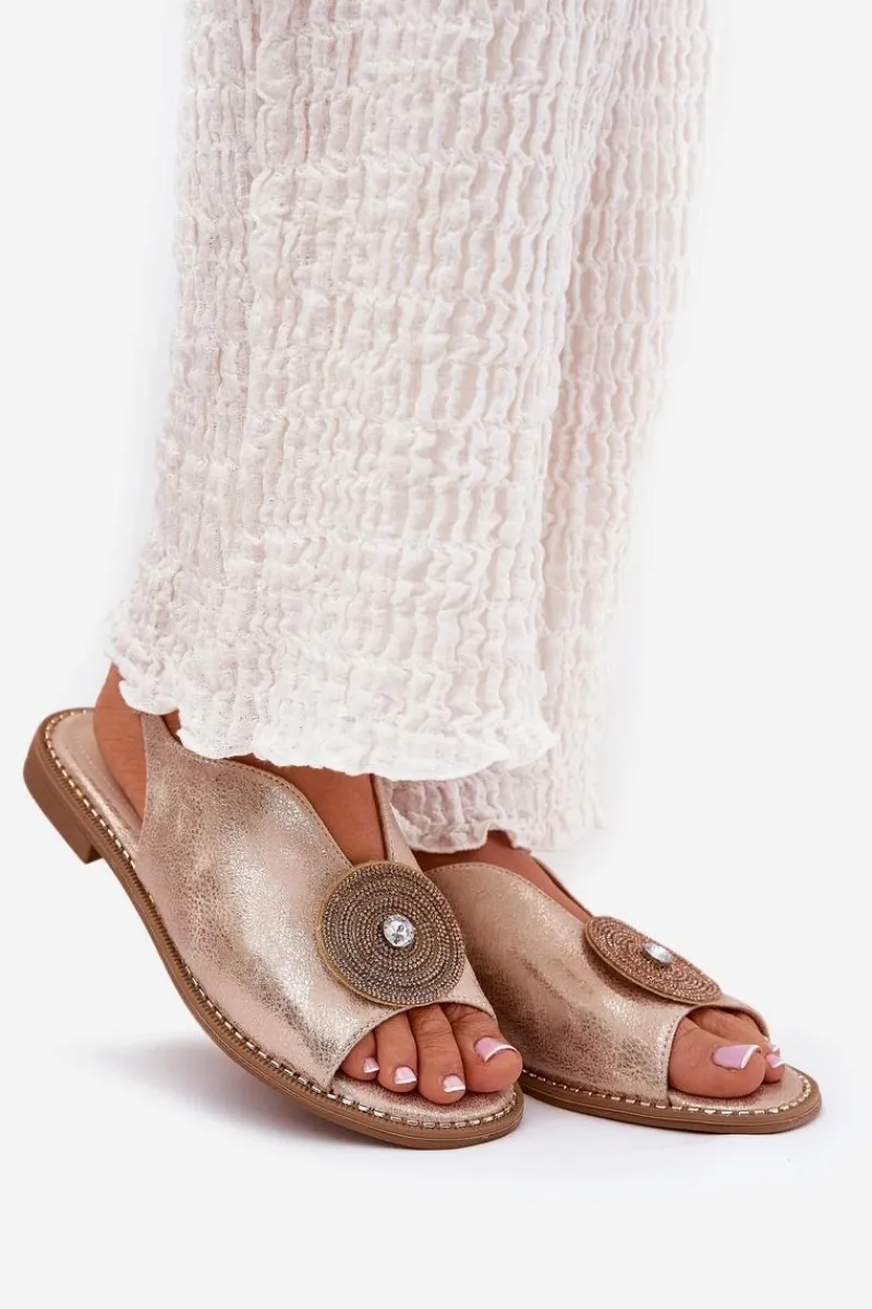 Sandały Z Cholewką|Sandały Płaskie>Damskie buty S.Barski Połyskujące Sandały Damskie Ozdobnym Detalem S.Barski KV51-012 Różowe Złoto Złoty