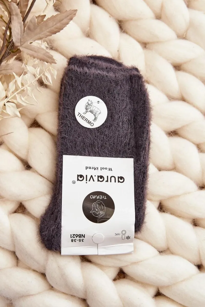 Skarpetki|Skarpetki>Aura.via Ciepłe Gładkie Skarpety Damskie Alpaka Ciemnoszare