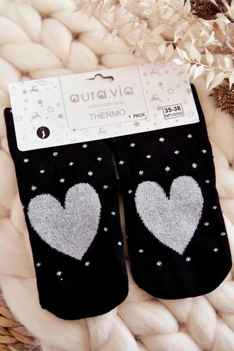 Skarpetki|Skarpetki>Aura.via Damskie Antypoślizgowe Skarpetki W Serca I Kropki Czarne