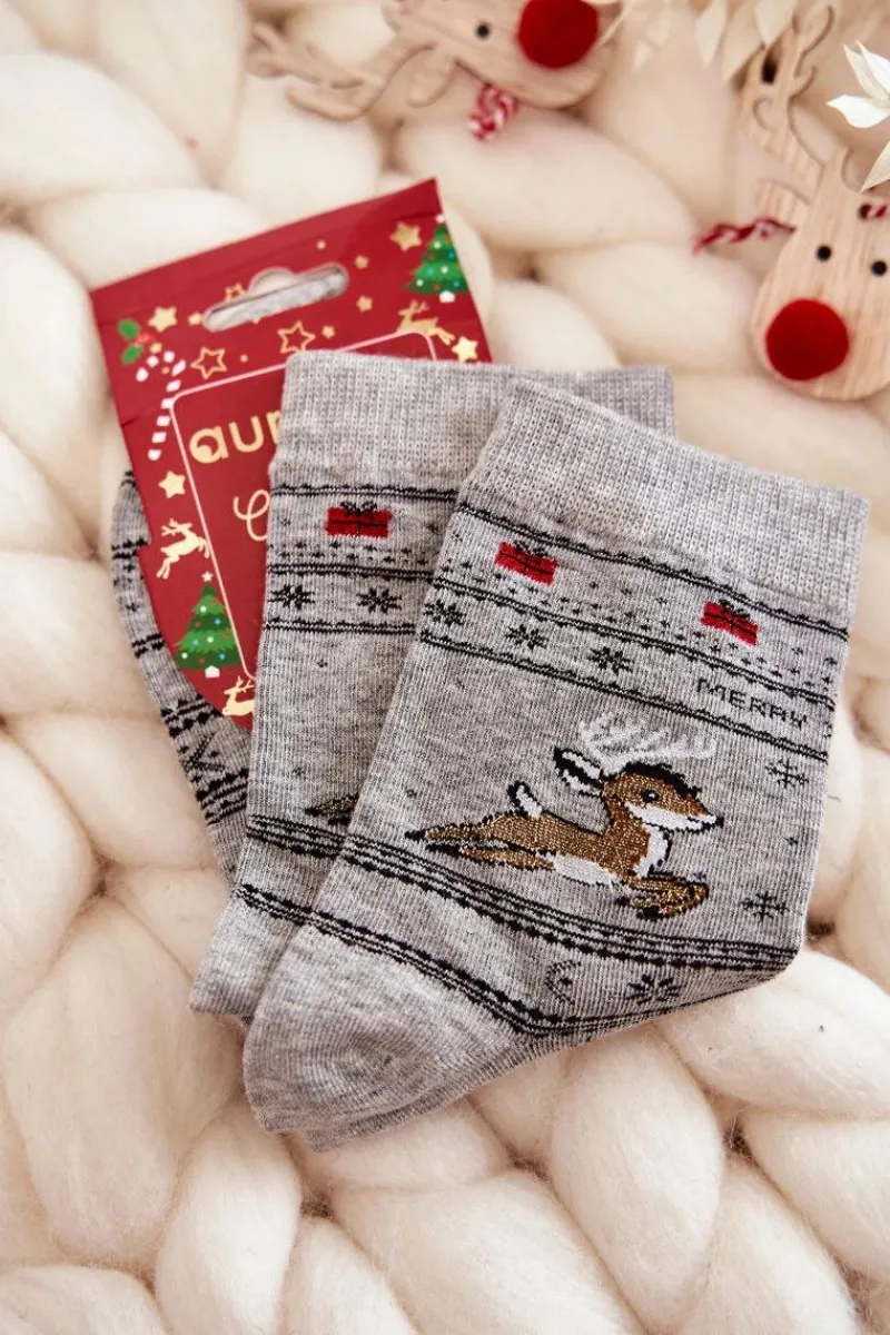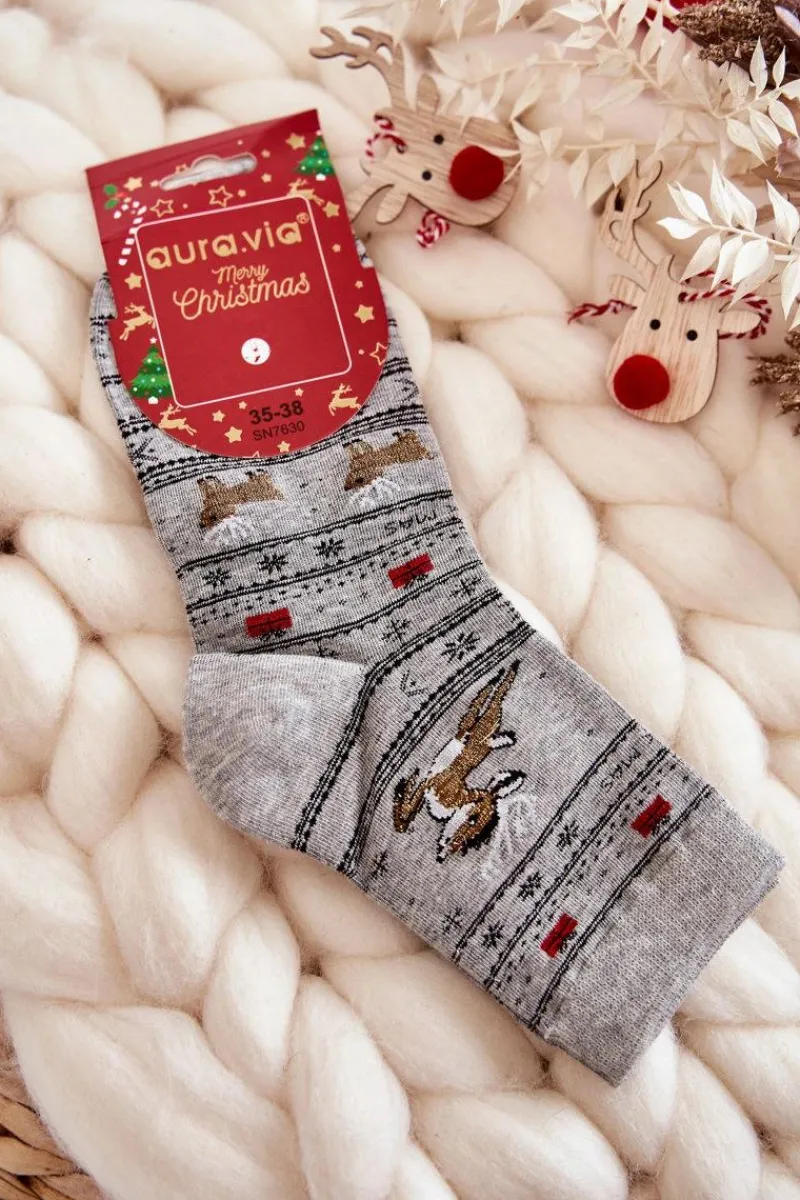 Skarpetki|Skarpetki>Aura.via Damskie Bawełniane Świąteczne Skarpety Renifery Szare