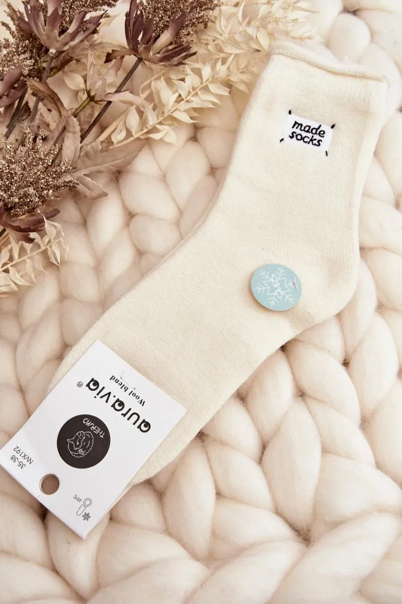 Ciepłe skarpety damskie idealne na mroźne dni. Model z małą naszywką. Lekki ściągacz sprawi, że będą idealnie dopasowane do tęgości nogi. Koniecznie powinnaś je mieć!