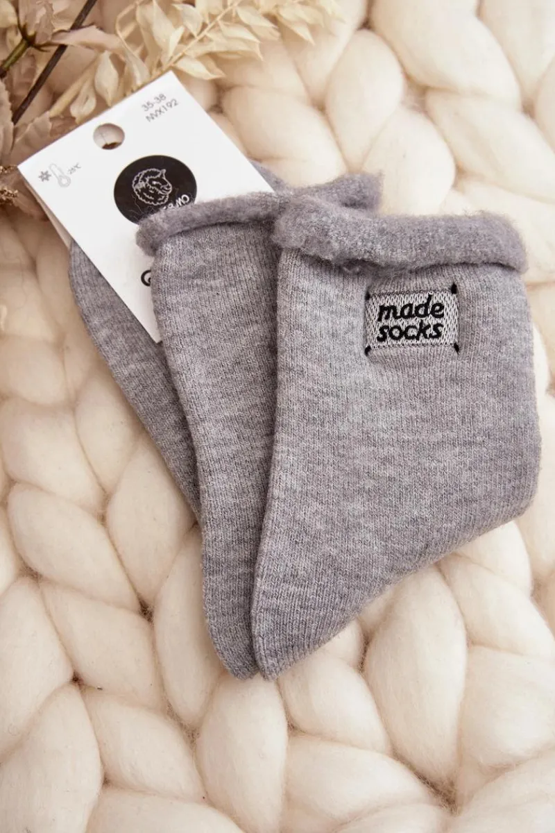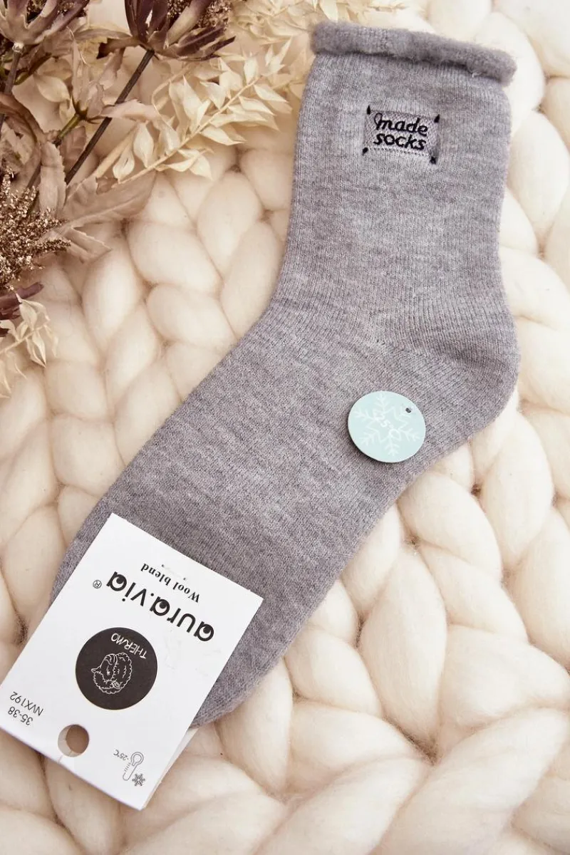 Ciepłe skarpety damskie idealne na mroźne dni. Model z małą naszywką. Lekki ściągacz sprawi, że będą idealnie dopasowane do tęgości nogi. Koniecznie powinnaś je mieć!