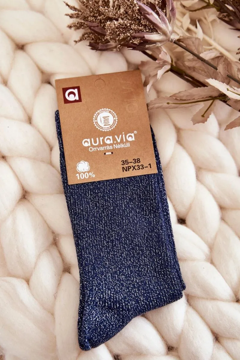 Skarpetki|Skarpetki>Aura.via Damskie Skarpetki Z Błyszczącą Nicią Granatowe