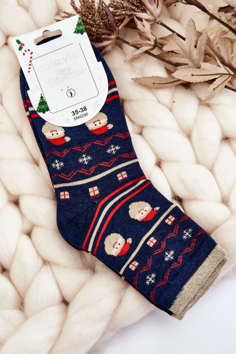 Skarpetki|Skarpetki>Aura.via Damskie Skarpety W Świąteczne Wzory Mikołaj Granatowe