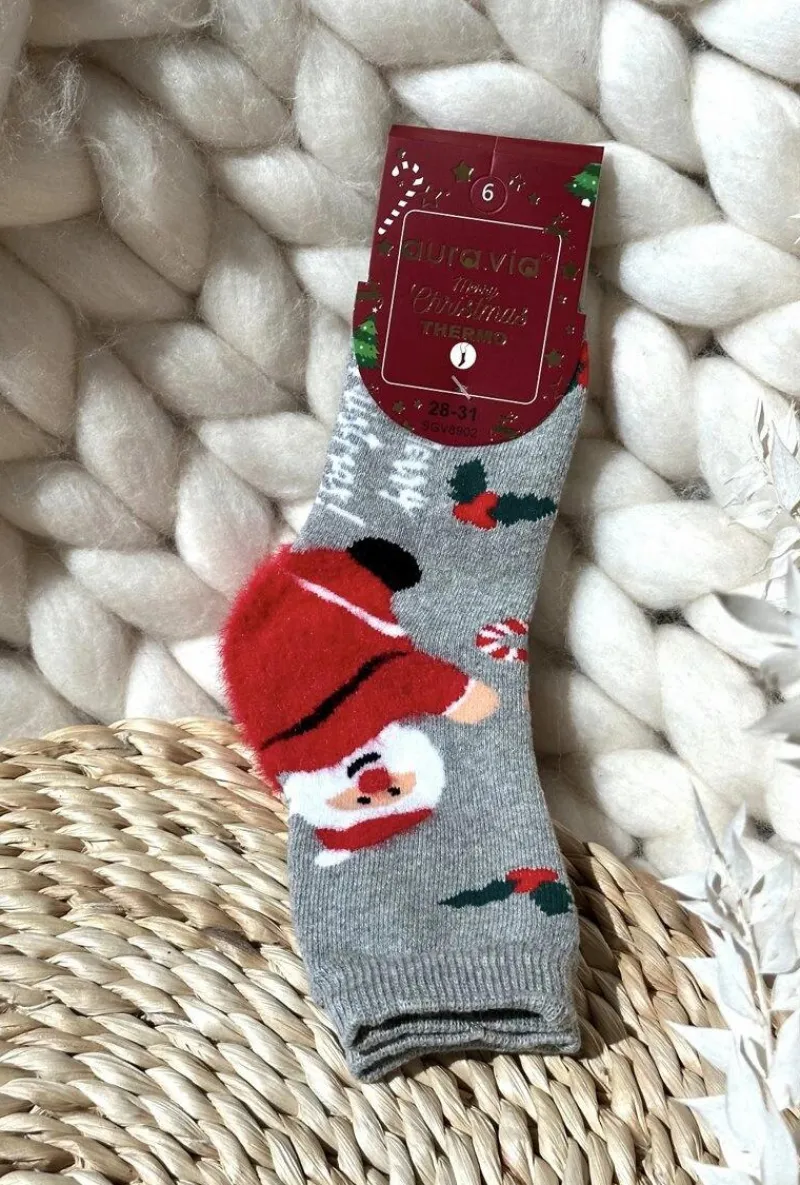 Dziecięce skarpety wykonane z bawełny, zapewniają komfort noszenia przez cały dzień. Skarpety ozdobione są uroczym motywem świątecznym z wizerunkiem Mikołaja, co nadaje im wesołego i świątecznego charakteru. Idealne na chłodniejsze dni. Skarpety są dostępne w różnych rozmiarach, dzięki czemu można je łatwo dopasować do dziecięcych stóp. Doskonały wybór na prezent świąteczny lub jako dodatek do zimowej garderoby dziecka.