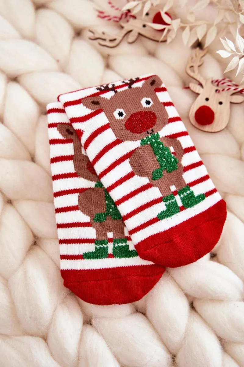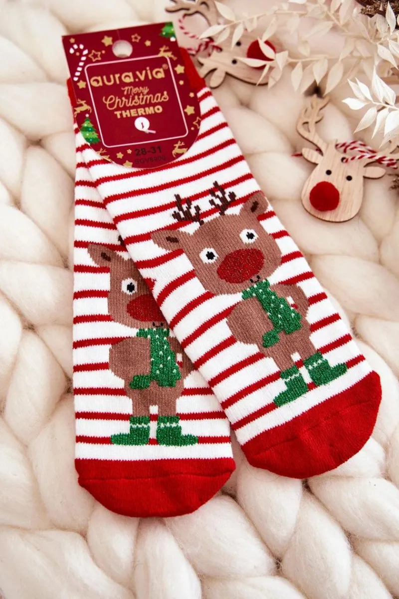 Idealne skarpetki dziecięce na zimowe, chłodne dni! Zostały wykonane głównie z bawełny. Te termoaktywne skarpetki ozdobiono świątecznymi motywami. Skarpetki sprawdzą się także jako dodatek do świątecznego prezentu! Model ten posiada ściągacz, który odpowiednio dopasuje się do tęgości nogi pociechy.
