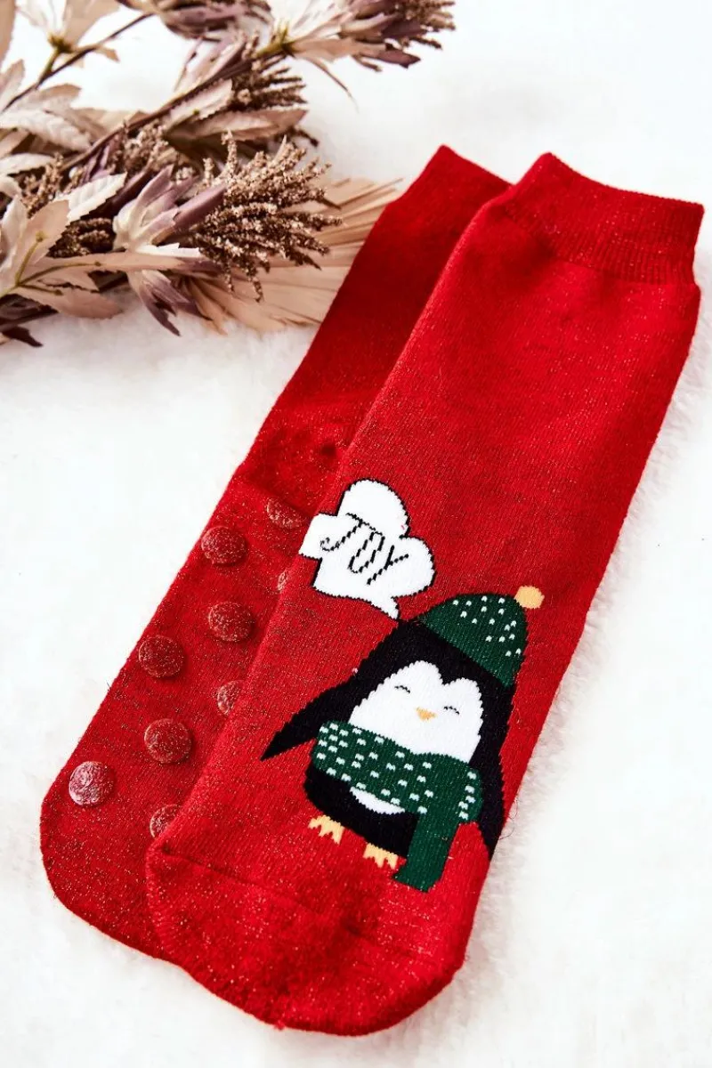 Skarpetki|Skarpetki>Aura.via Skarpetki Antypoślizgowe Błyszczące Pingwin Czerwone