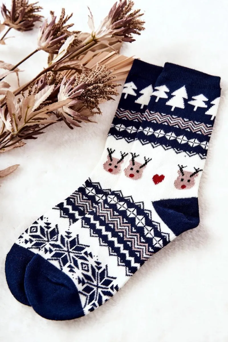 Skarpetki|Skarpetki>Aura.via Skarpetki W Świąteczny Wzór Granatowo-Białe