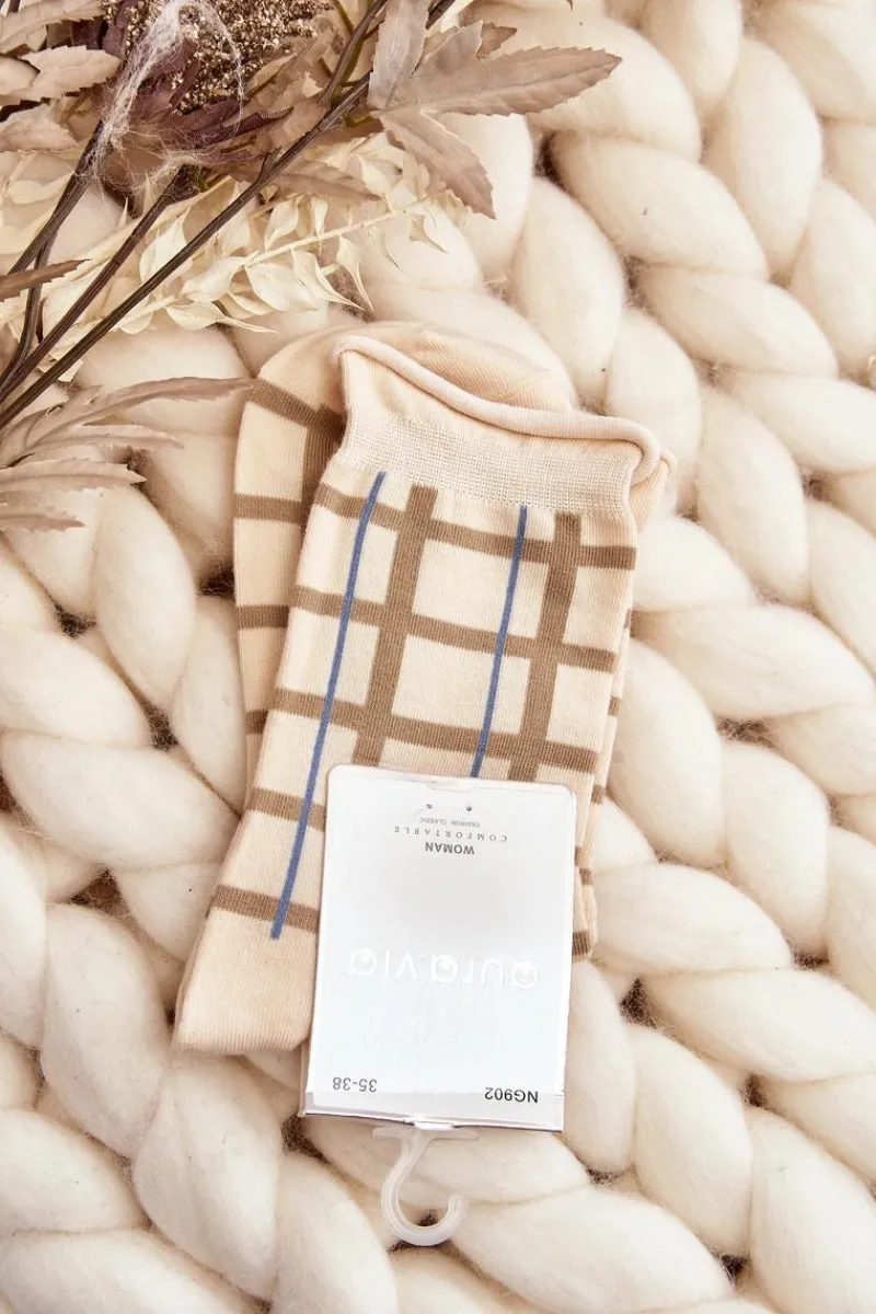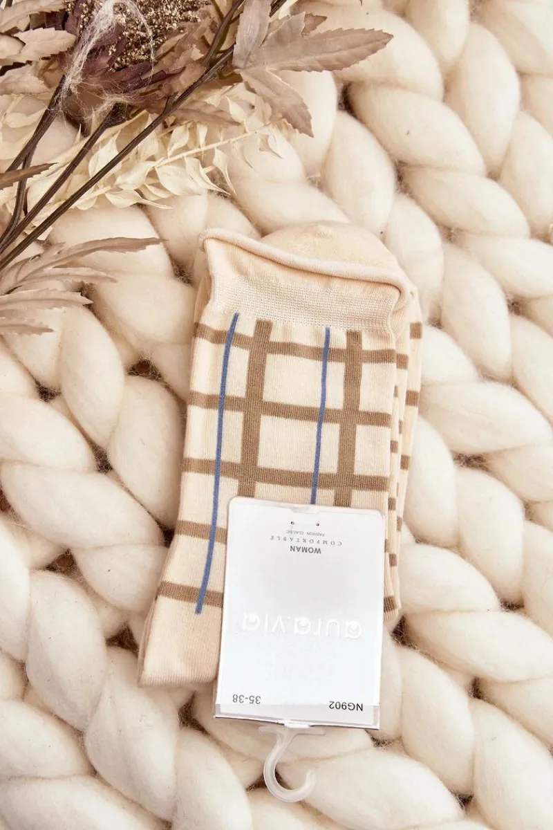 Skarpetki|Skarpetki>Aura.via Skarpety Damskie We Wzory Kratka Jasnobeżowe