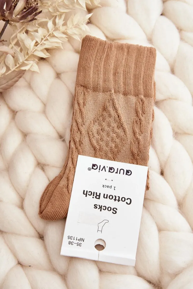 Skarpetki|Skarpetki>Aura.via Skarpety Damskie Z Tłoczeniem Brązowe