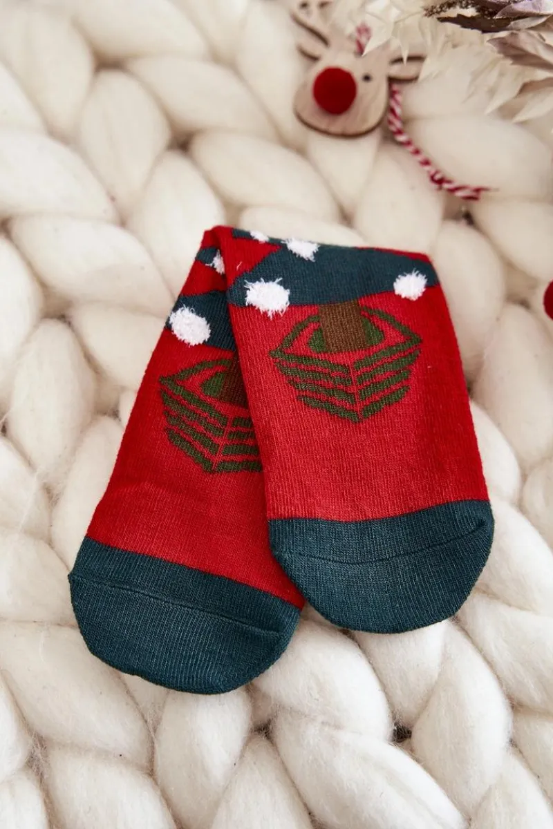 Piękne, dziecięce skarpetki w świąteczne wzory z pewnością spodobają się dziecku! Wykonane z wysokiej jakości bawełny. Posiadają ściągacz, który idealnie dopasuje się do tęgości nóżki dziecka. Dodatkowo posiadają urocze uszka przy ściągaczu. Te skarpetki sprawdzą się także jako dodatek do prezentu!