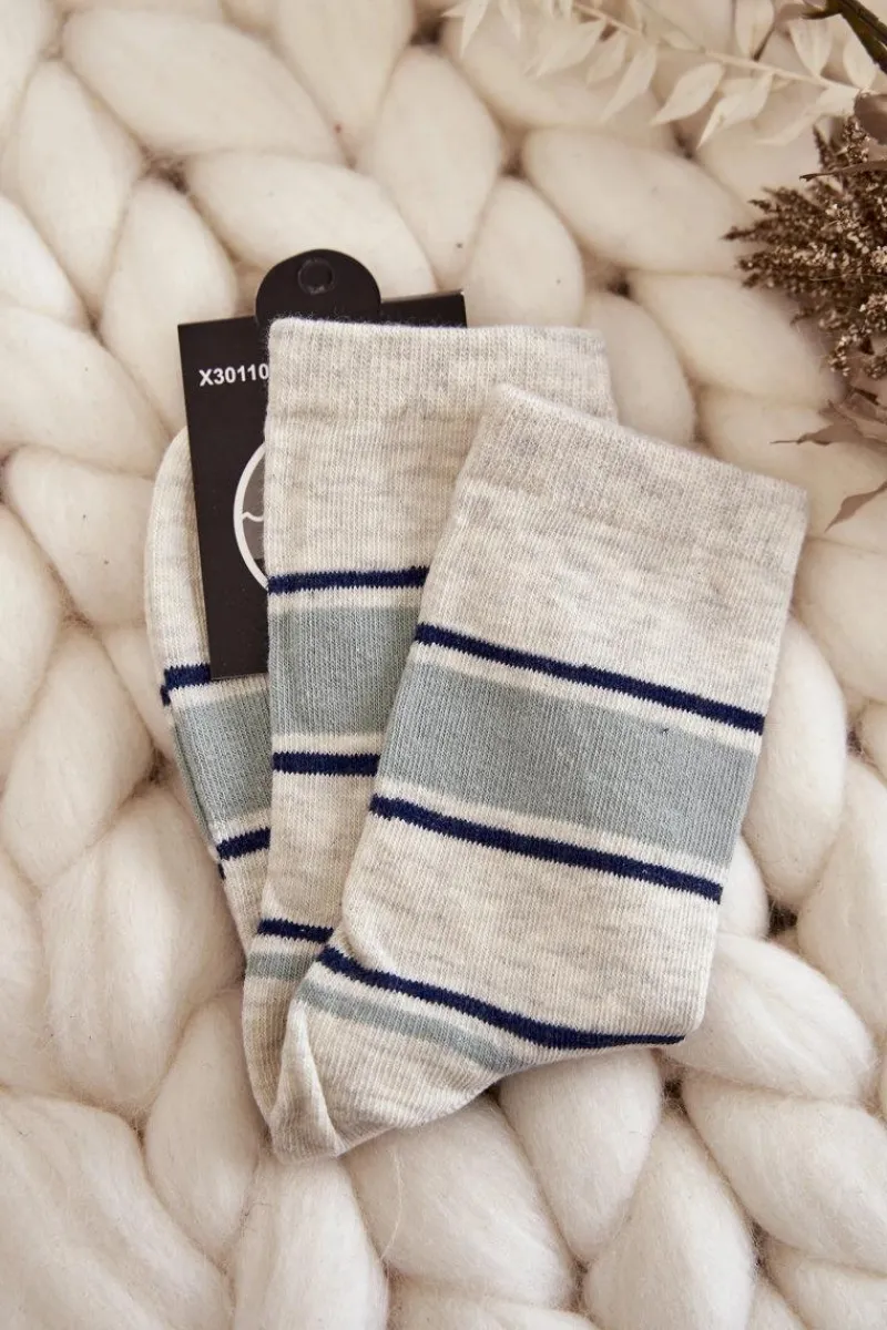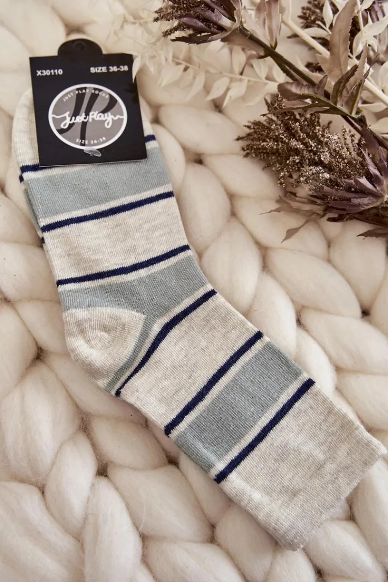 Skarpetki|Skarpetki>Just Play Damskie Bawełniane Klasyczne Skarpety W Pasy Beżowo-Zielone