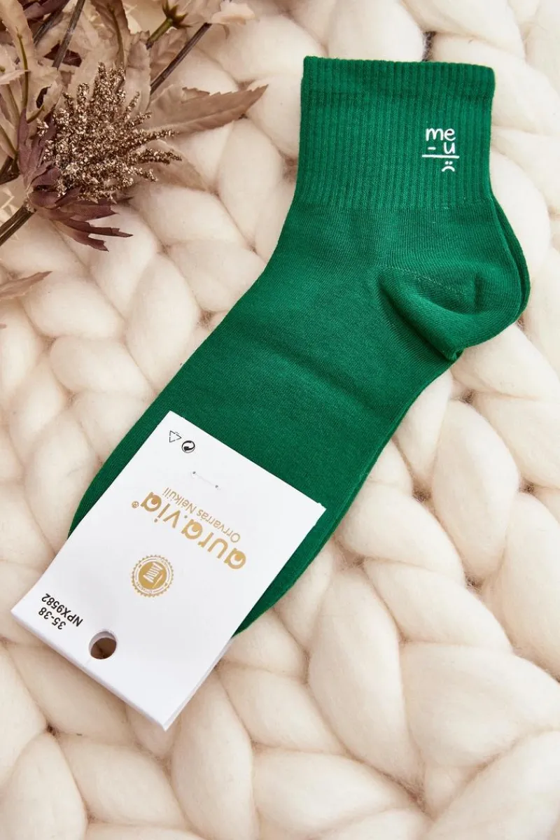 Klasyczne, damskie skarpetki zostały wykonane w 85% z bawełny. Model za kostkę z małym rebusem. Ściągacz świetnie dopasuje się do tęgości nogi. Idealne do wielu rodzajów obuwia.