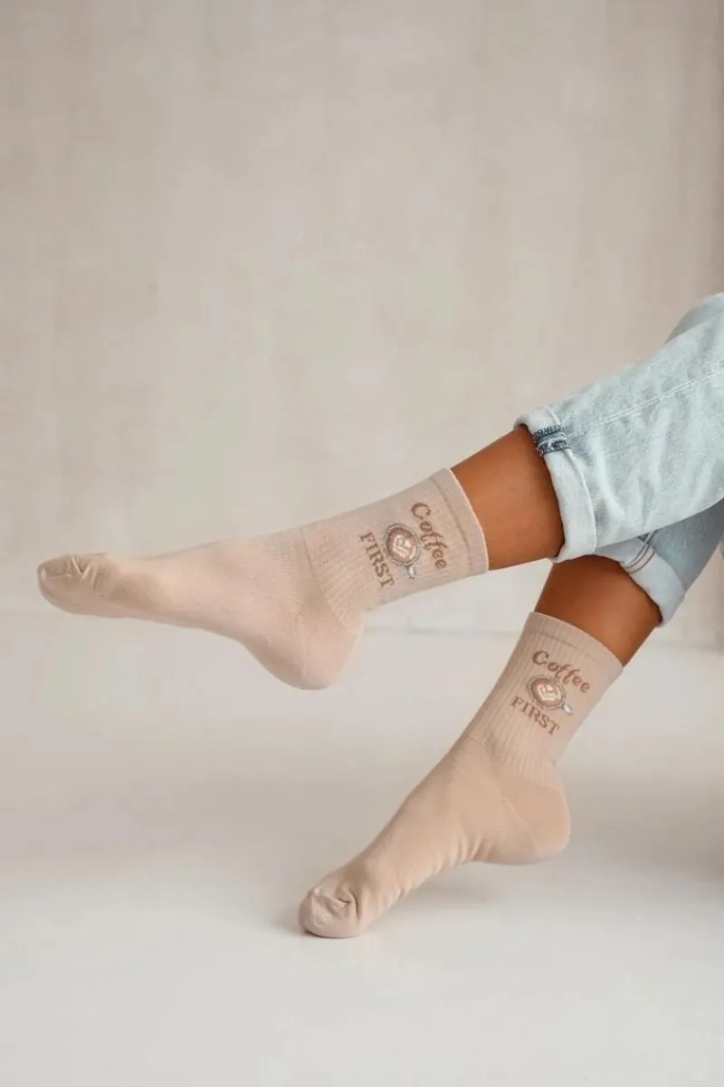 Skarpetki|Skarpetki>Milena Skarpetki Damskie Coffee FIRST Beżowe