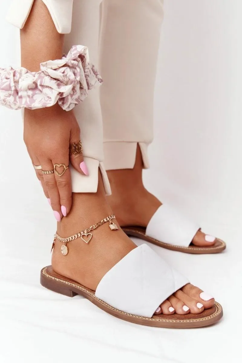 Eleganckie klapki od polskiej firmy Nicole. Buty wykonane są w całości ze skóry naturalnej z dbałością o każdy detal. Miękka wkładka oraz antypoślizgowa podeszwa zadbają o Twój komfort. Klapki dopełnią wiele letnich stylizacji! Koniecznie sprawdź całą naszą kolekcję butów marki Nicole. Przy wyborze rozmiaru prosimy sugerować się tabelą rozmiarów.