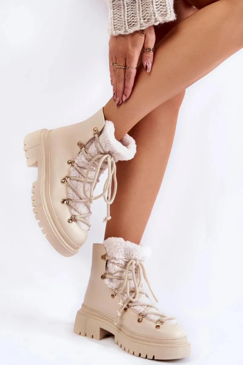Ten model wprawia w zachwyt każdego, kto uwielbia wyróżniać się z tłumu! Ocieplane wnętrze w postaci miłego w dotyku koca obuwniczego. Język tych botków został wykonany z przyjemnego w dotyku kożuszka. Trapery posiadają wiązanie na okrągłe sznurowadła. Cholewka została wykonana z eko skóry. Buty osadzone są na płaskim obcasie i delikatnej platformie. Koniecznie musisz je mieć! Przy wyborze rozmiaru prosimy sugerować się tabelą rozmiarów.