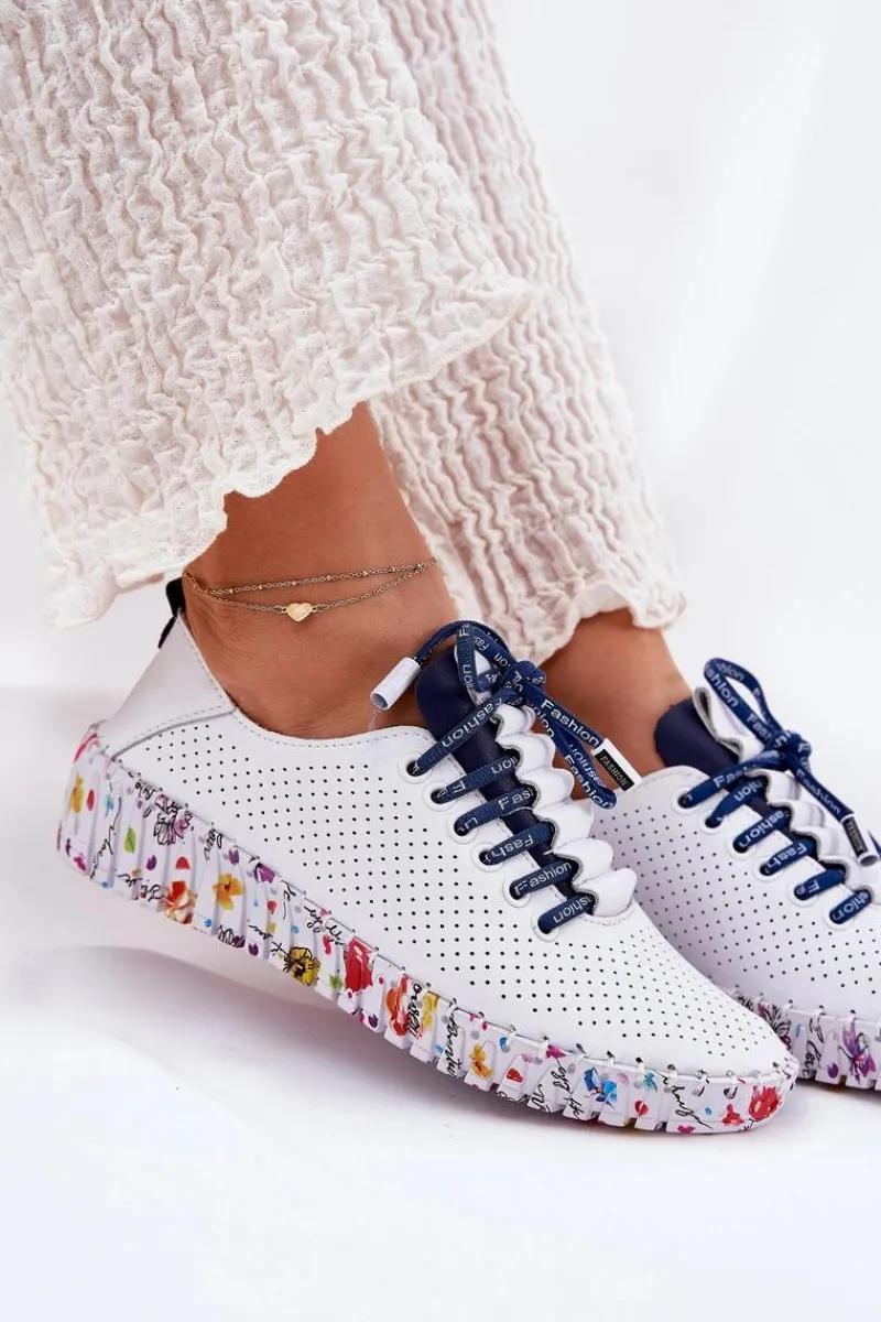 Półbuty damskie wykonane z naturalnej skóry. Osadzone na wzorzystej platformie z delikatnym koturnem, łączą wygodę z modnym designem. Zaokrąglone noski zapewniają komfort przez cały dzień, a sznurowany model umożliwia idealne dopasowanie do stopy. Miękka wkładka dodatkowo zwiększa wygodę noszenia. Te półbuty będą doskonałym wyborem do codziennych stylizacji, wprowadzając do nich subtelną elegancję i lekkość. Przy wyborze rozmiaru prosimy sugerować się tabelą rozmiarów.