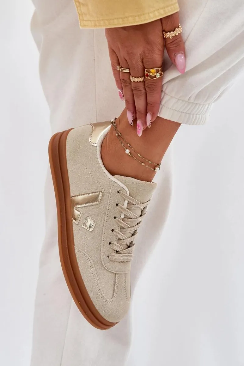 Sneakersy damskie wykonane z eko zamszu to propozycja dla miłośniczek klasycznych fasonów i wygody. Model o niskiej cholewce, z szerokimi, zaokrąglonymi noskami, zapewnia komfort nawet podczas dłuższego użytkowania. Wewnątrz znajduje się wyjmowana wkładka z miękkiej pianki, która dodatkowo amortyzuje każdy krok. Podeszwa z gumowego tworzywa gwarantuje odpowiednią przyczepność i trwałość. Idealne na co dzień do różnych stylizacji! Przy wyborze rozmiaru prosimy kierować tabelą rozmiarów.
