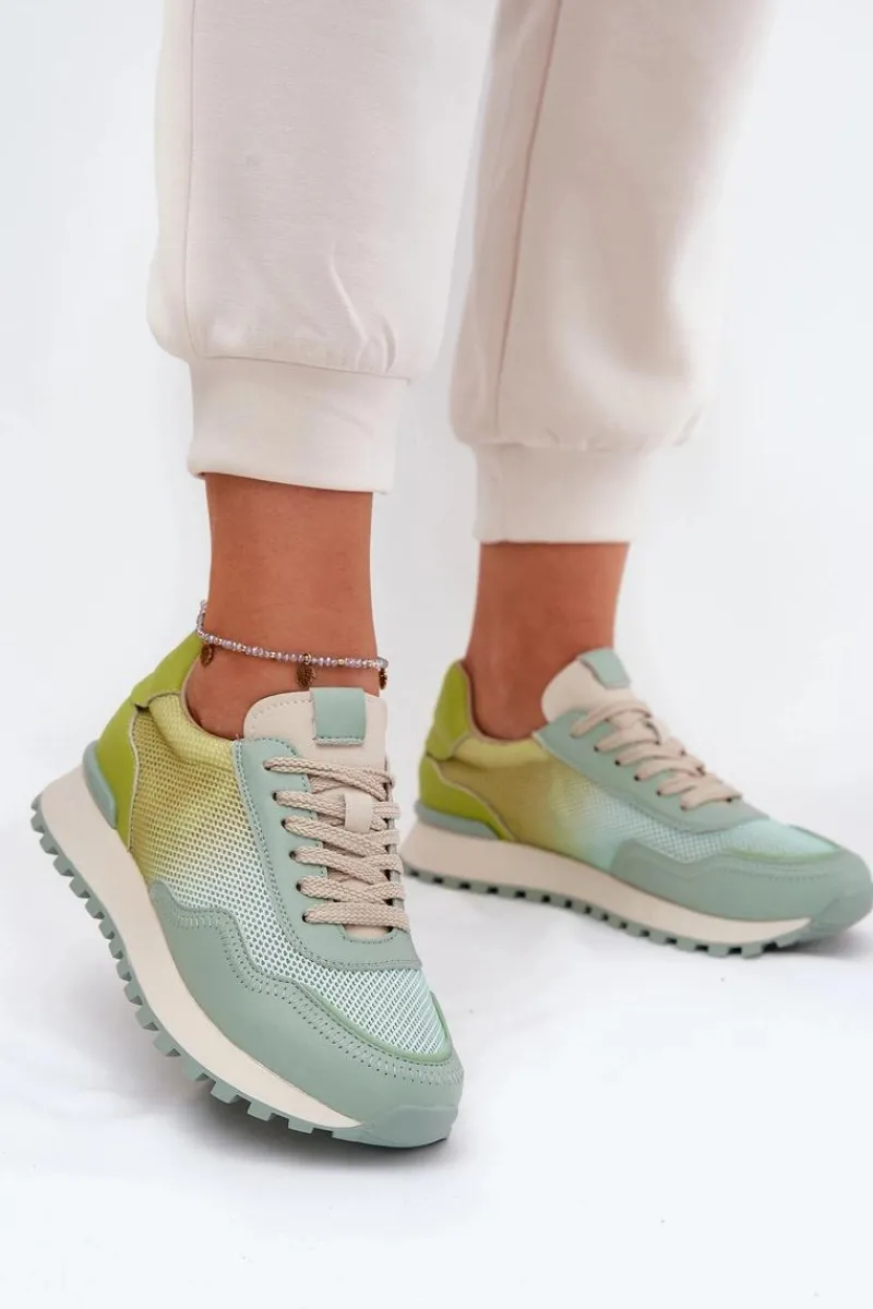Sneakersy Damskie>Buty damskie Vinceza Skórzane Buty Sportowe Z Siateczką Damskie Vinceza 66775 Zielone Zielony